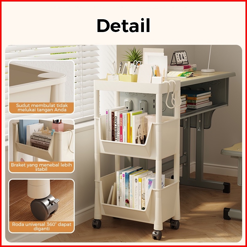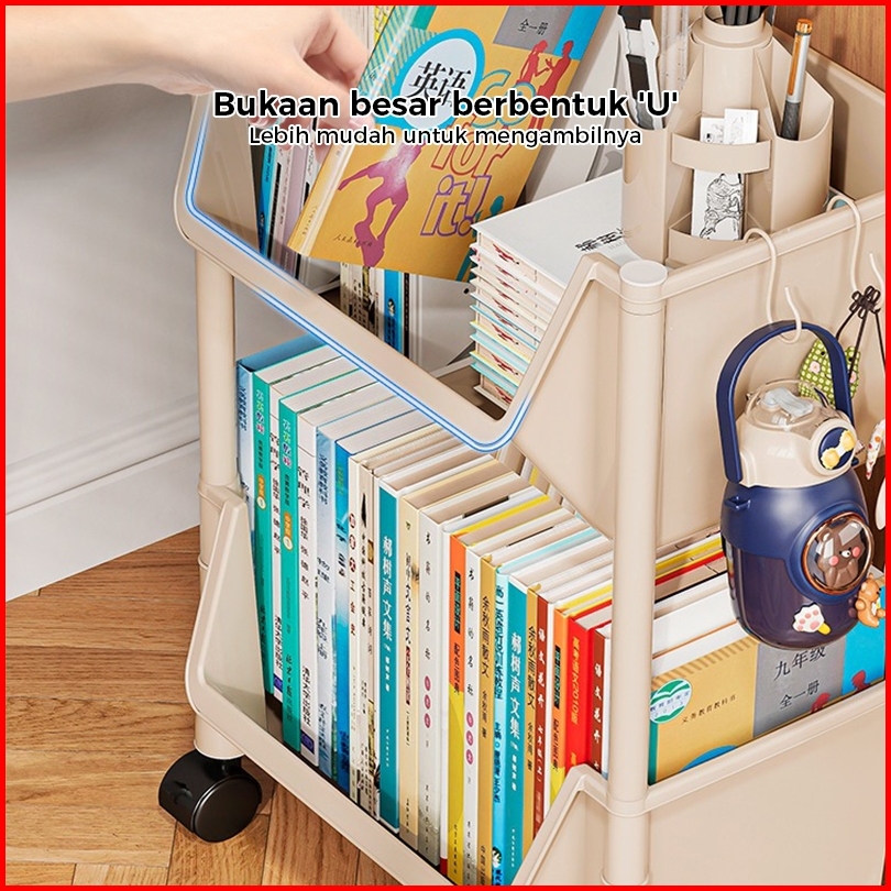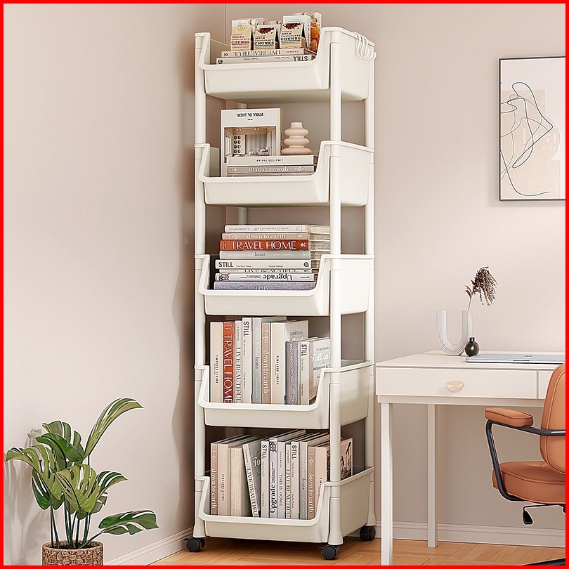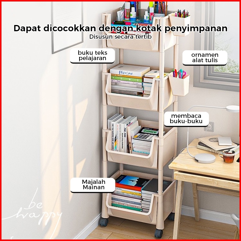 Homes Rak Buku Minimalis 5 Susun Lemari Buku Portable Rak Mainan Anak Dengan Roda
