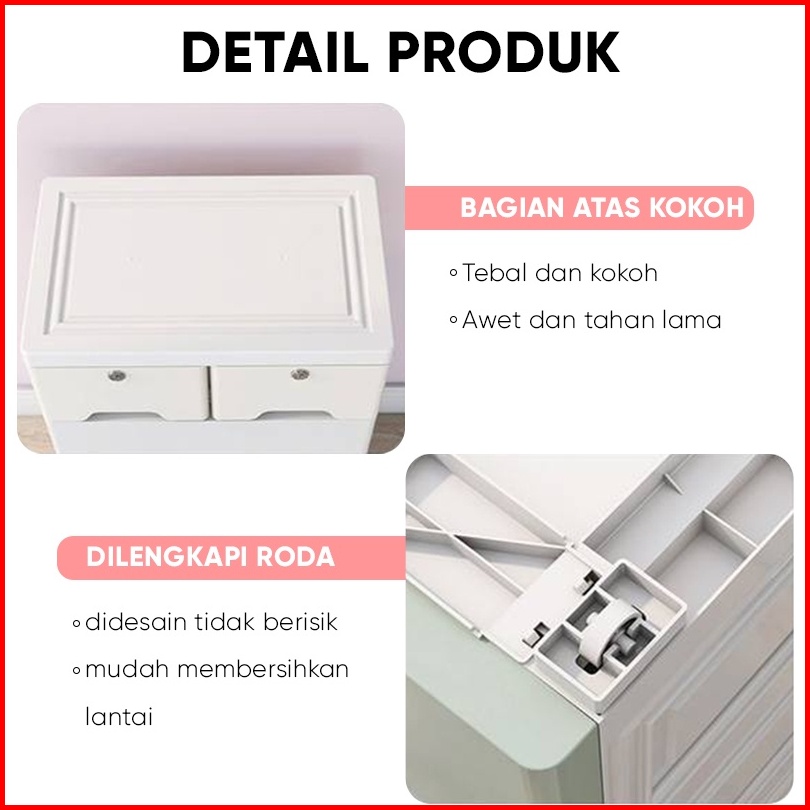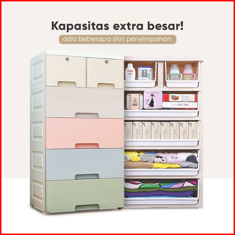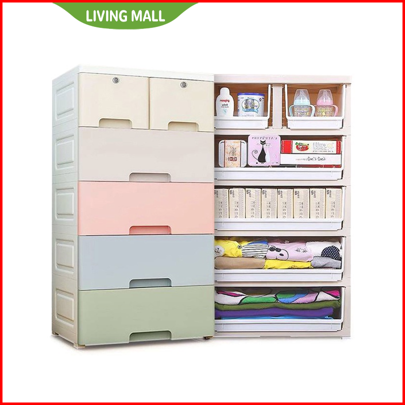 Cicilan 0 Living Mall Lemari Plastik Pakaian 5 Tingkat C68 Laci Susun Storage Cabinet Plastik Rak Susun Penyimpanan Baju