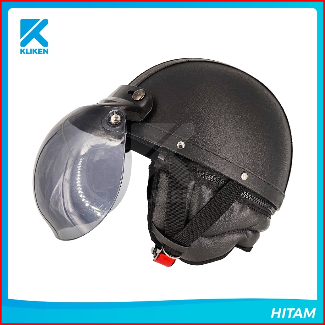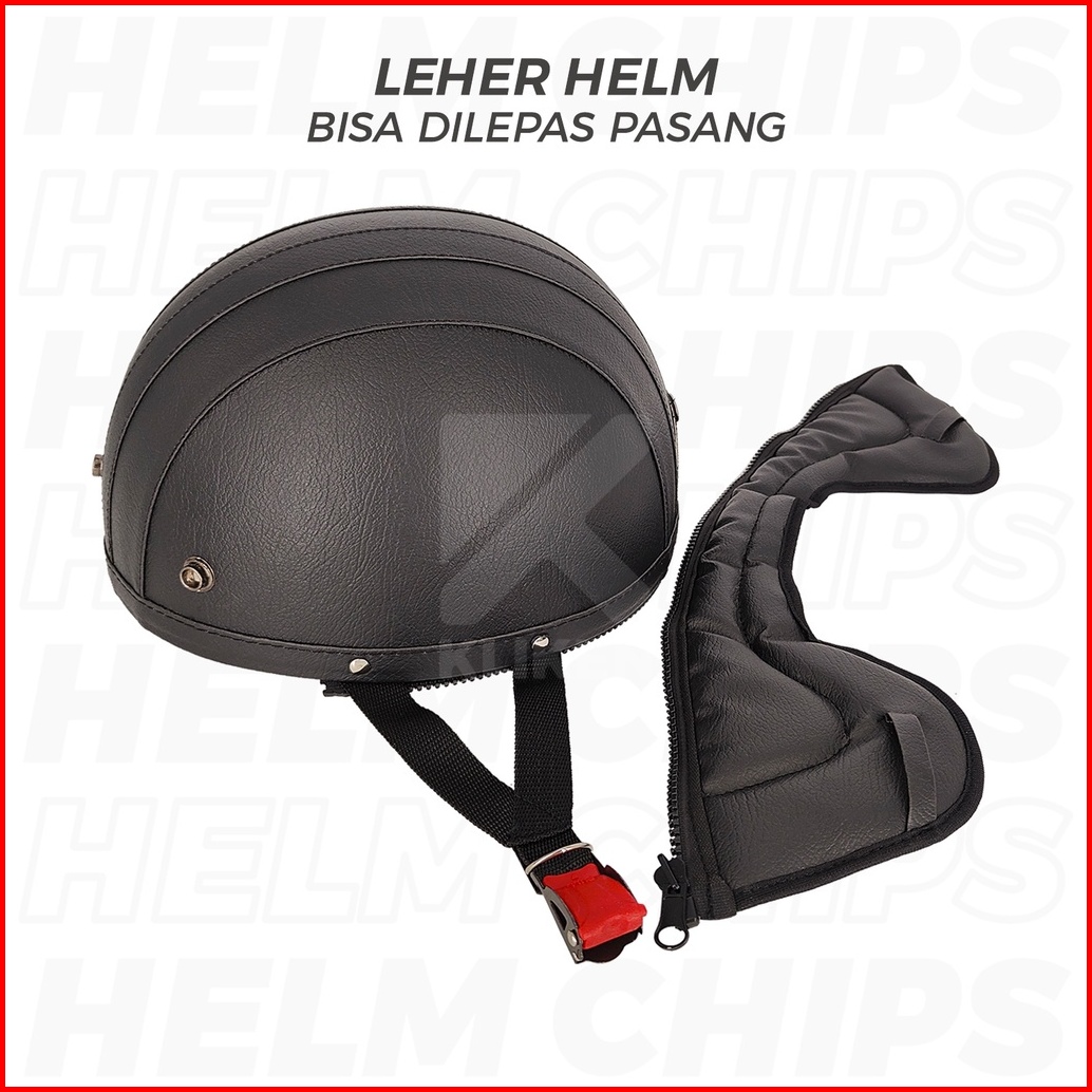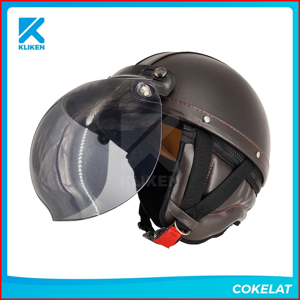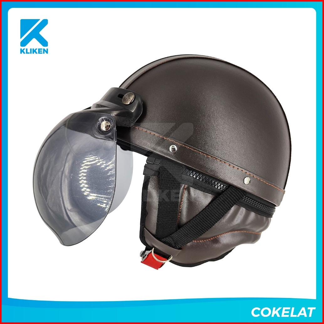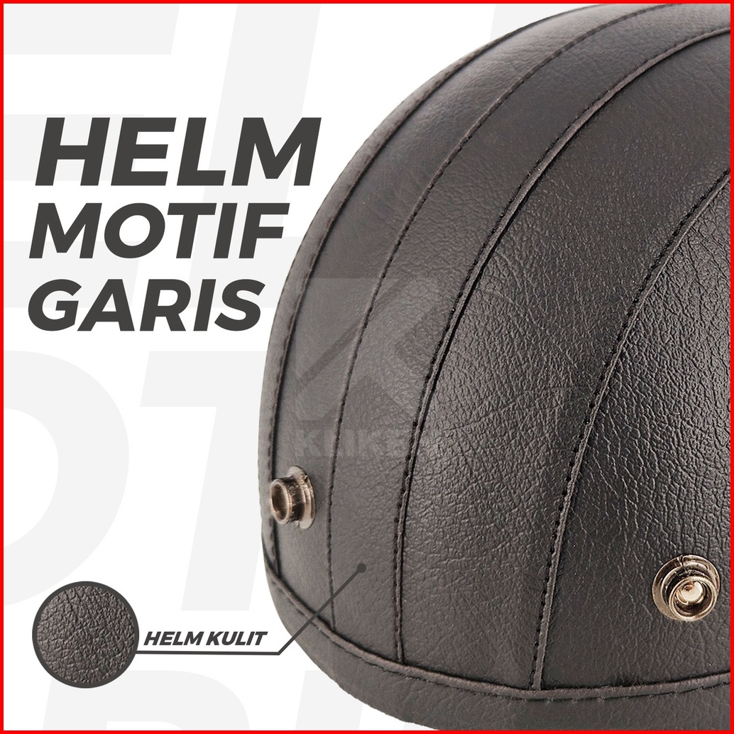 Helm Retro Klasik Cl2 Vintage Half Face Motor Classic Dewasa Kulit Motif Garis Variasi Kaca Cembung