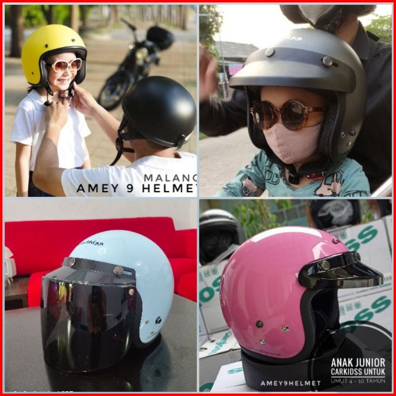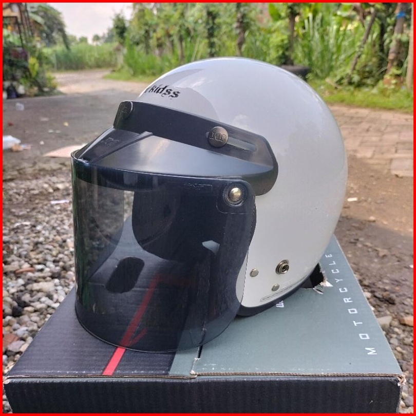 Helm Bogo Anak Jm Carkidss Retro Junior Full Leher Kaca Datar Kaca Cembung Original Sni