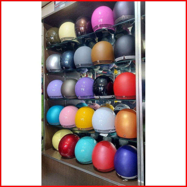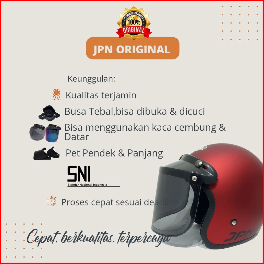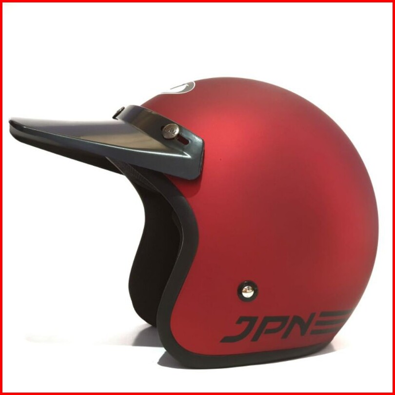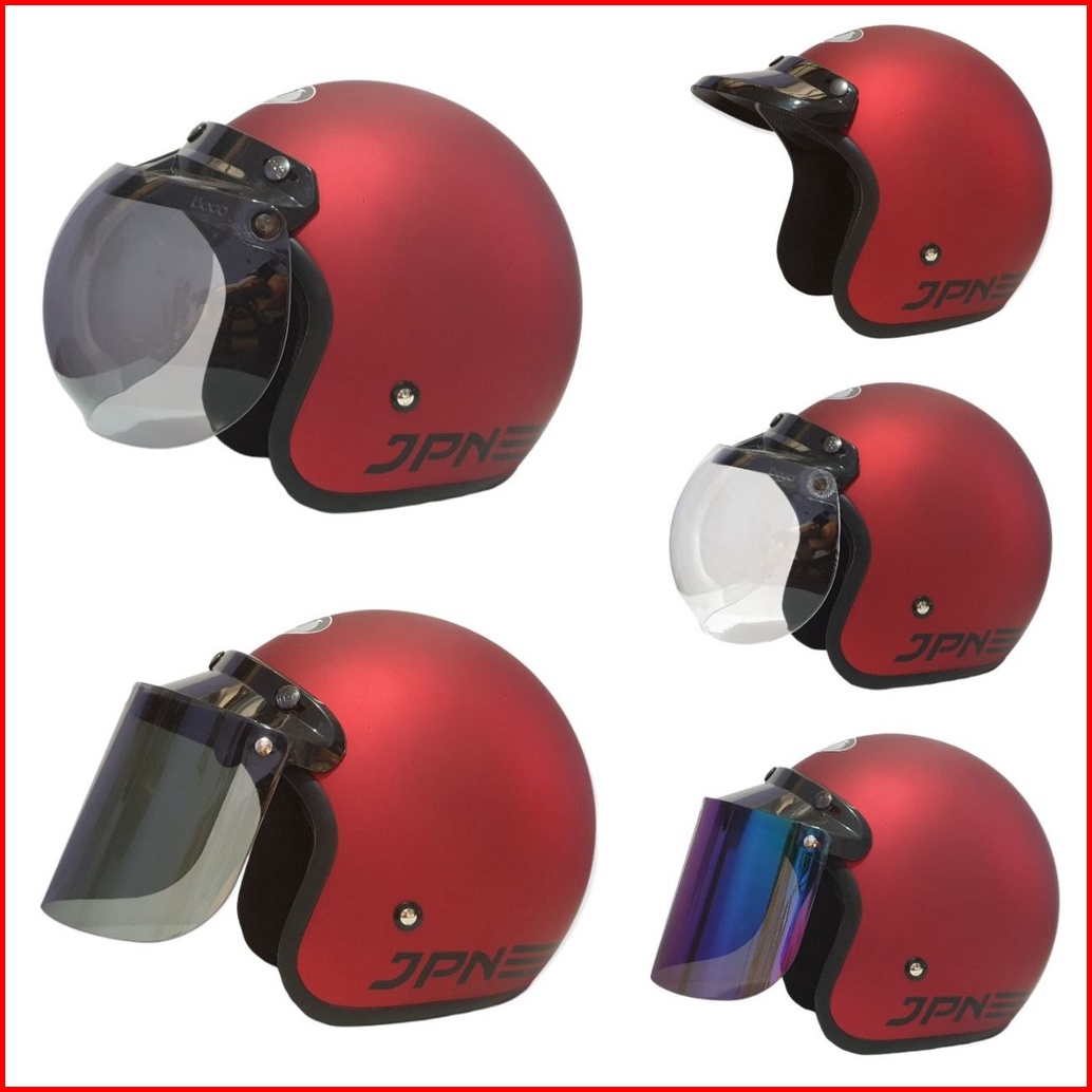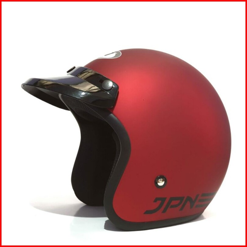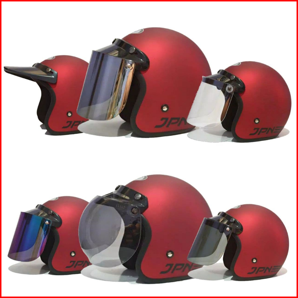 Helm Jpn Merah Maroon Doff Helmet Motor Bogo Retro Polos Pria Wanita Paket Kaca Datar Flat Cembung