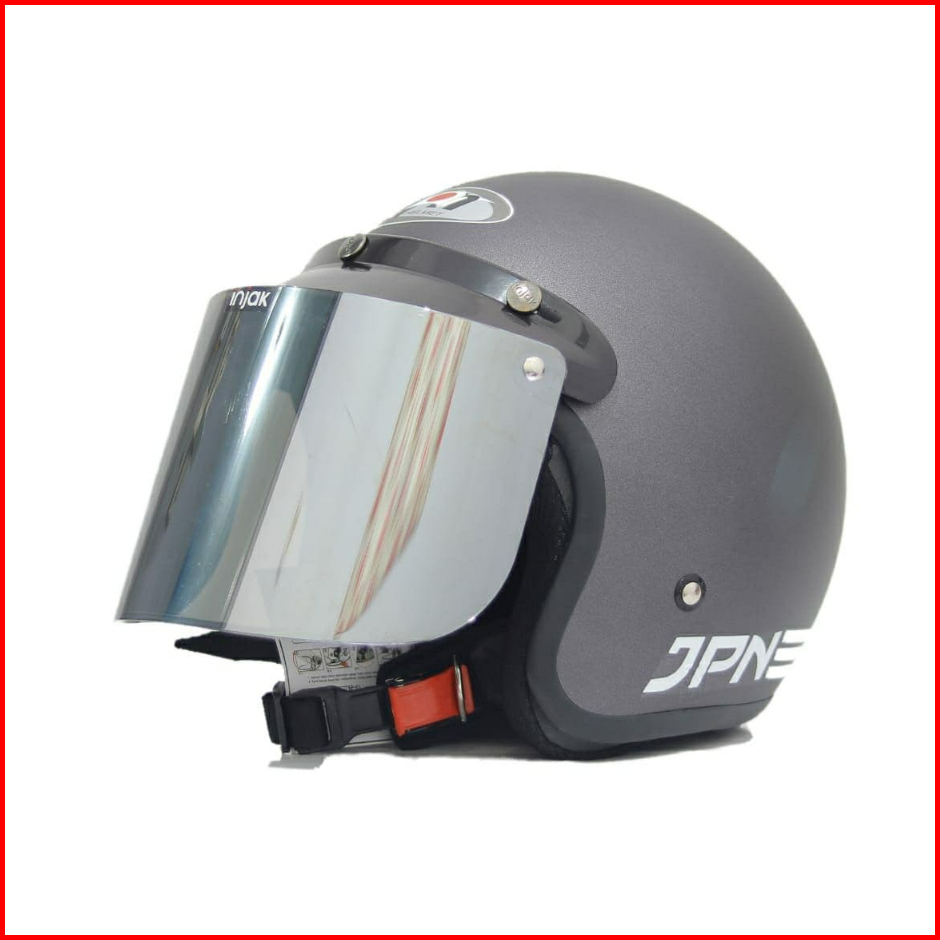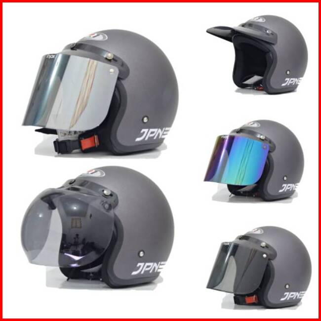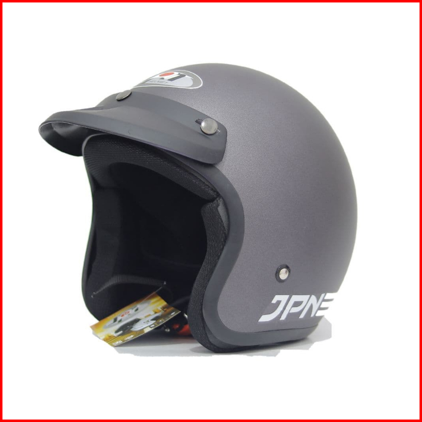 Helm Jpn Gunmetal D0ff Helmet Motor Bogo Retro Polos Pria Wanita Paket Kaca