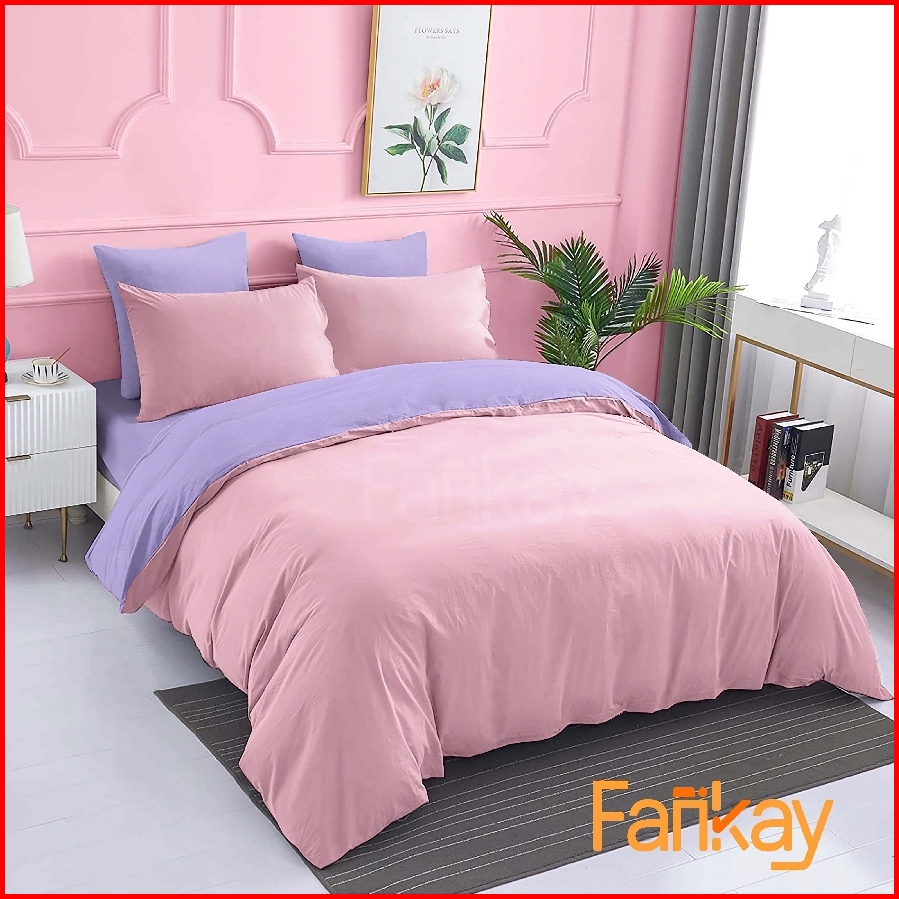 Bed Cover Fullset Sprei Twotone Pink Lilac Ukuran Lengkap - Fankay Bedcover