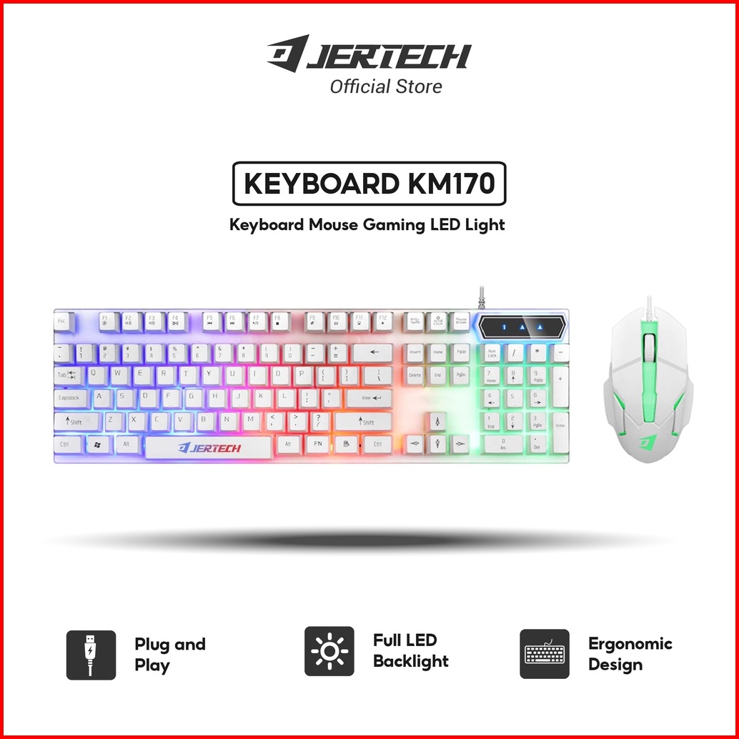 Jertech Keyboard Mouse Gaming Kabel Km170 Full Led Backlight 104 Keys