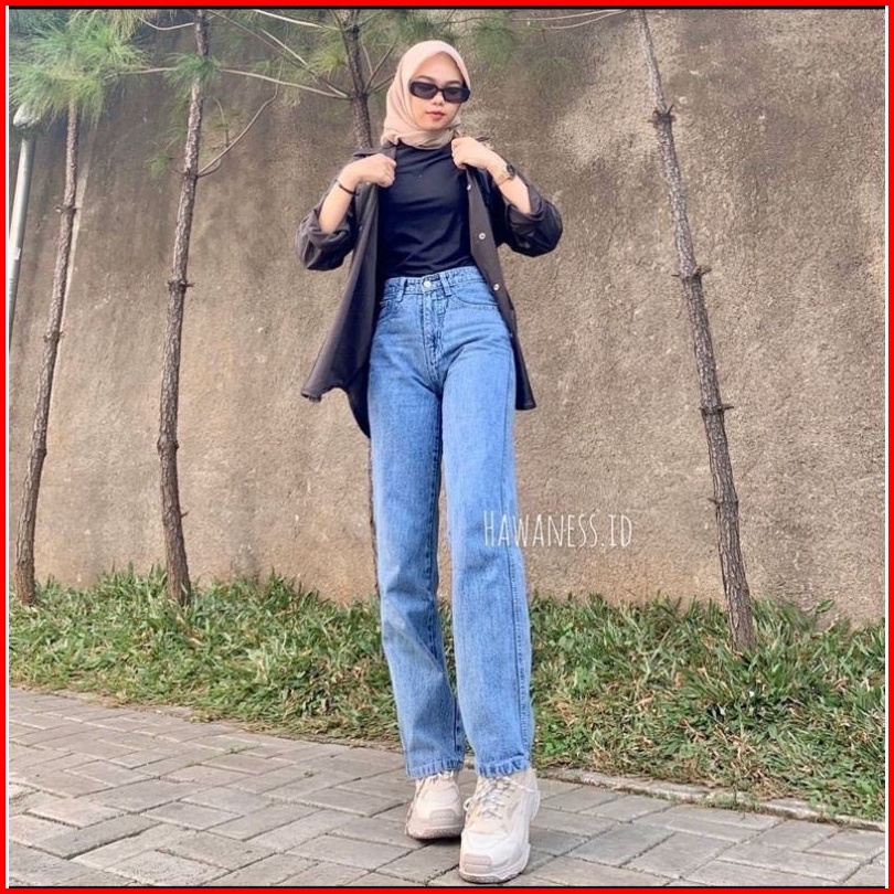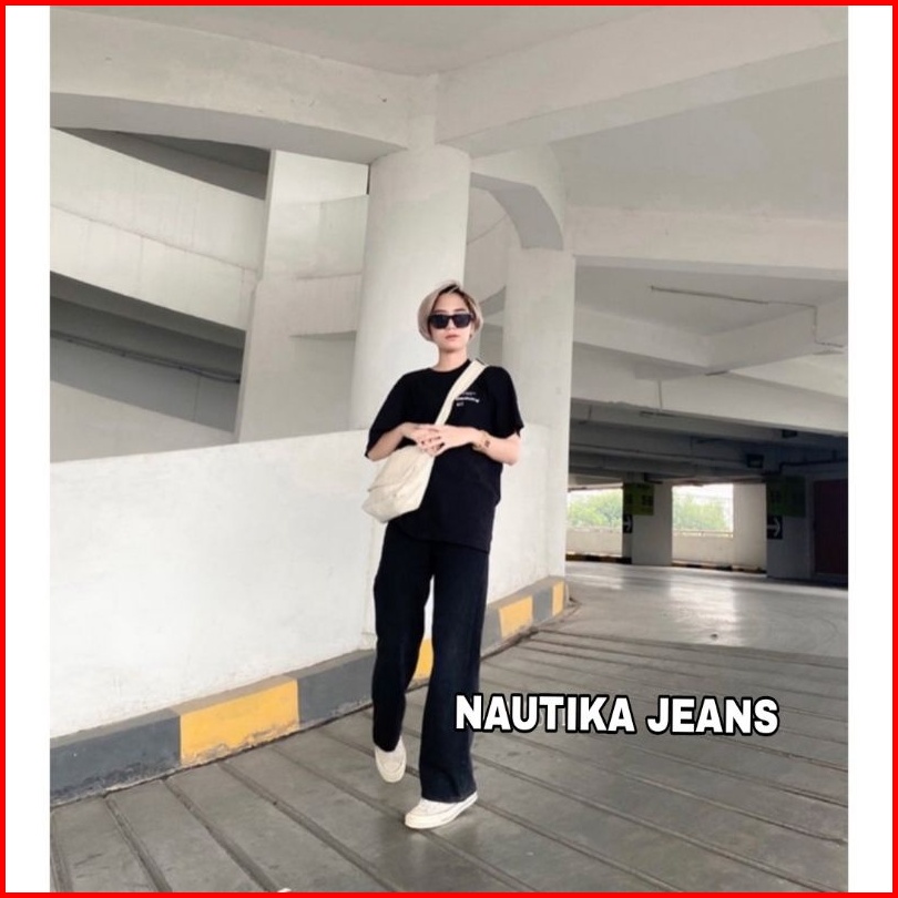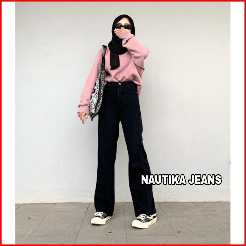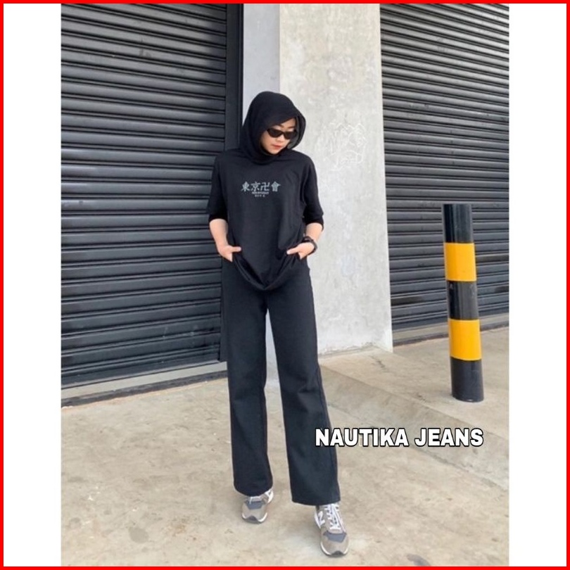 Celana Kulot Highwaist Jeans Wanita Loose Black