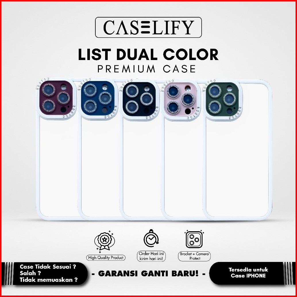 Caselify List Dual Colour Lensa Protector Case Iphone Free Sticker Glitter 7 8 X Xs Xr Xsmax 11 12 13 14 Pro Plus Max