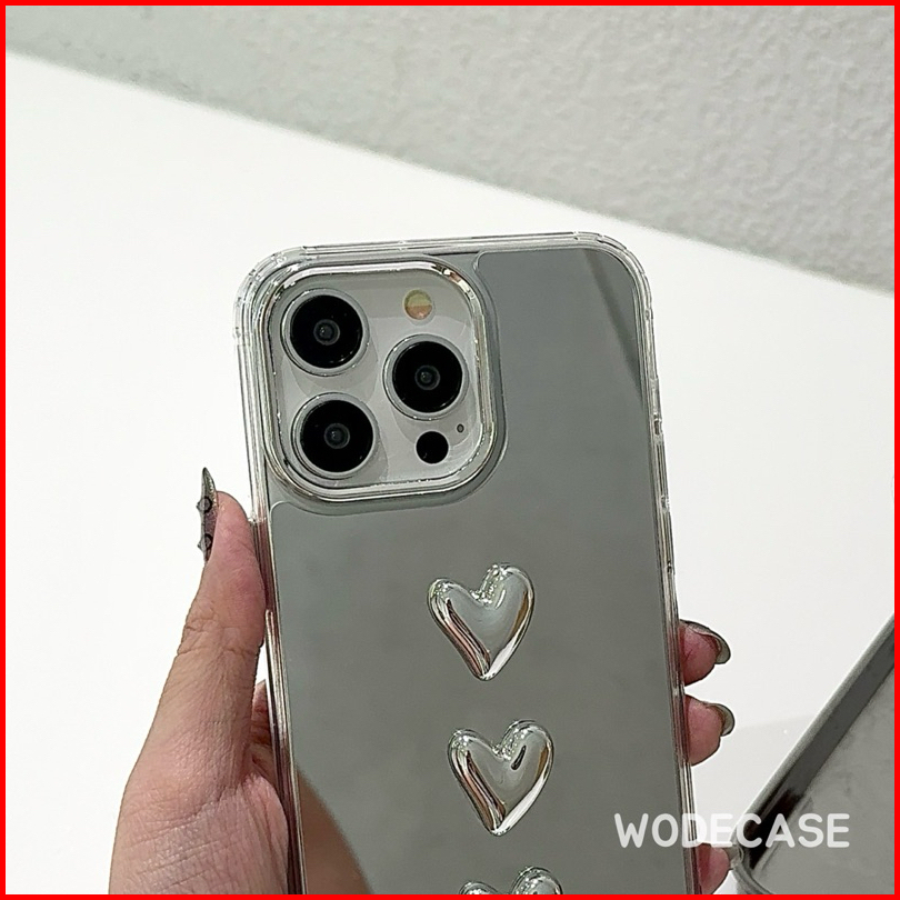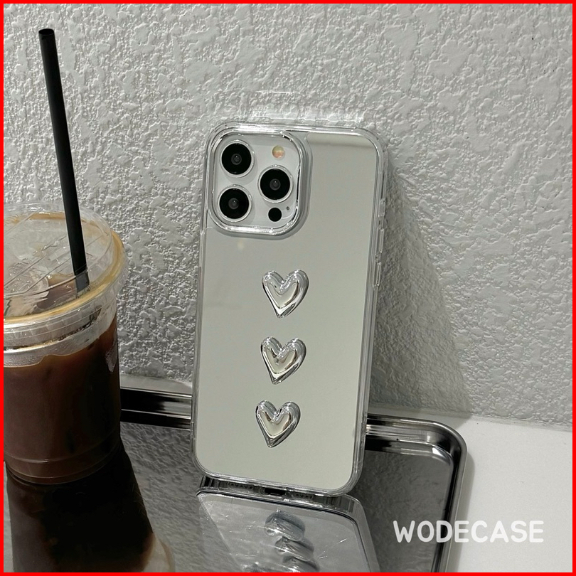 Wodecase Triple Heart Mirror Case Untuk Iphone 11-15 Pro Max