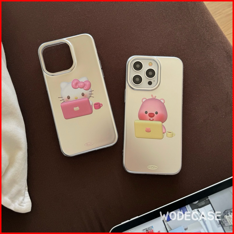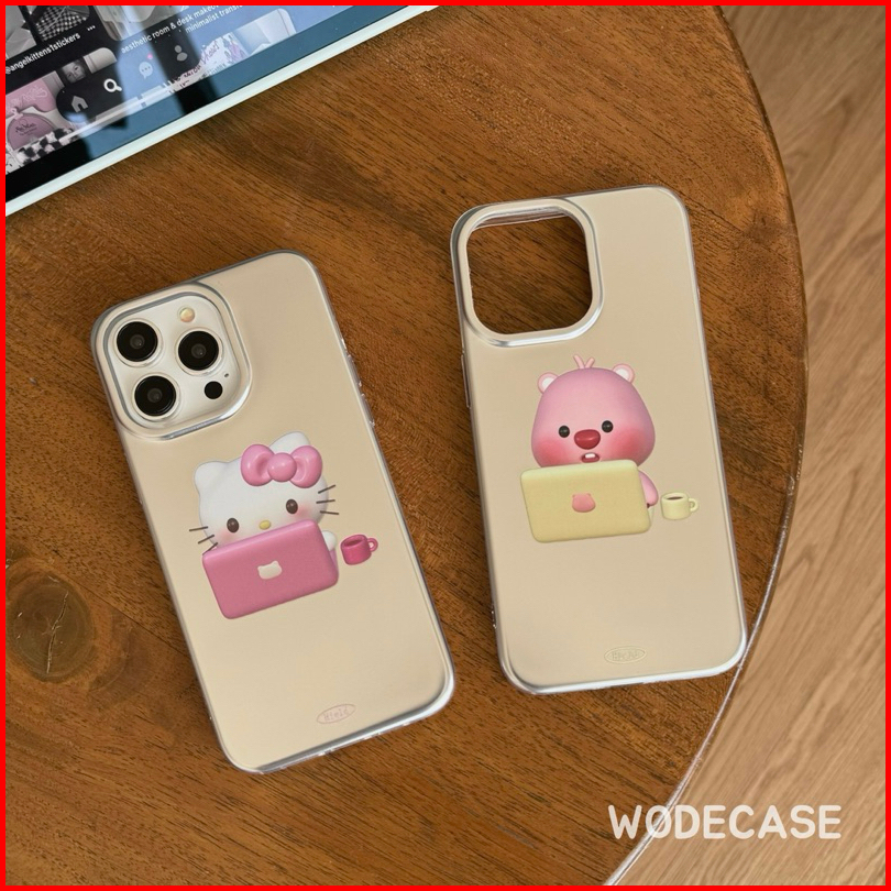 Wodecase Hello Kitty And Loppy Cafe Silver Case Untuk Iphone 11-15 Pro Max