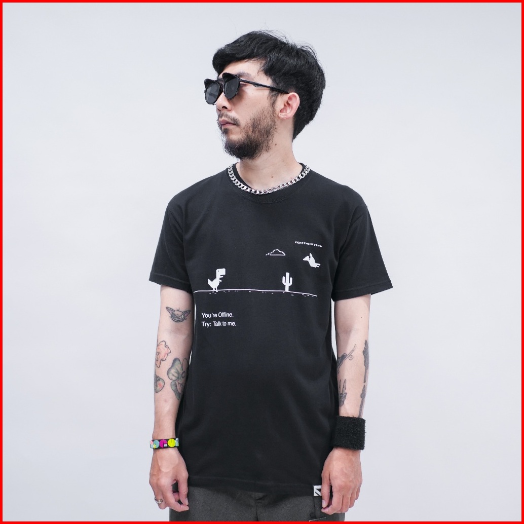Zerotwentytwo T-shirt Dino Disconnected Black Kaos Pria Hitam Game Google