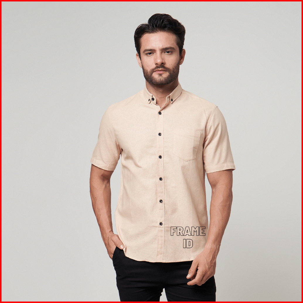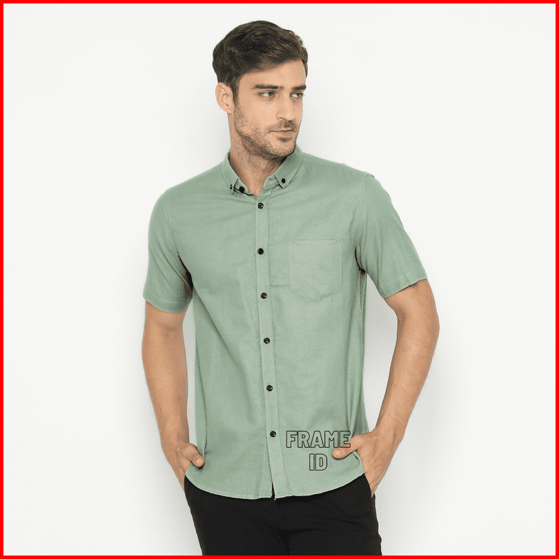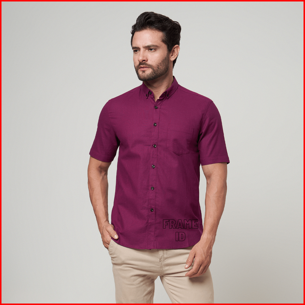 Kemeja Polos Pria Lengan Pendek Warna Burgundy Ungu Tua