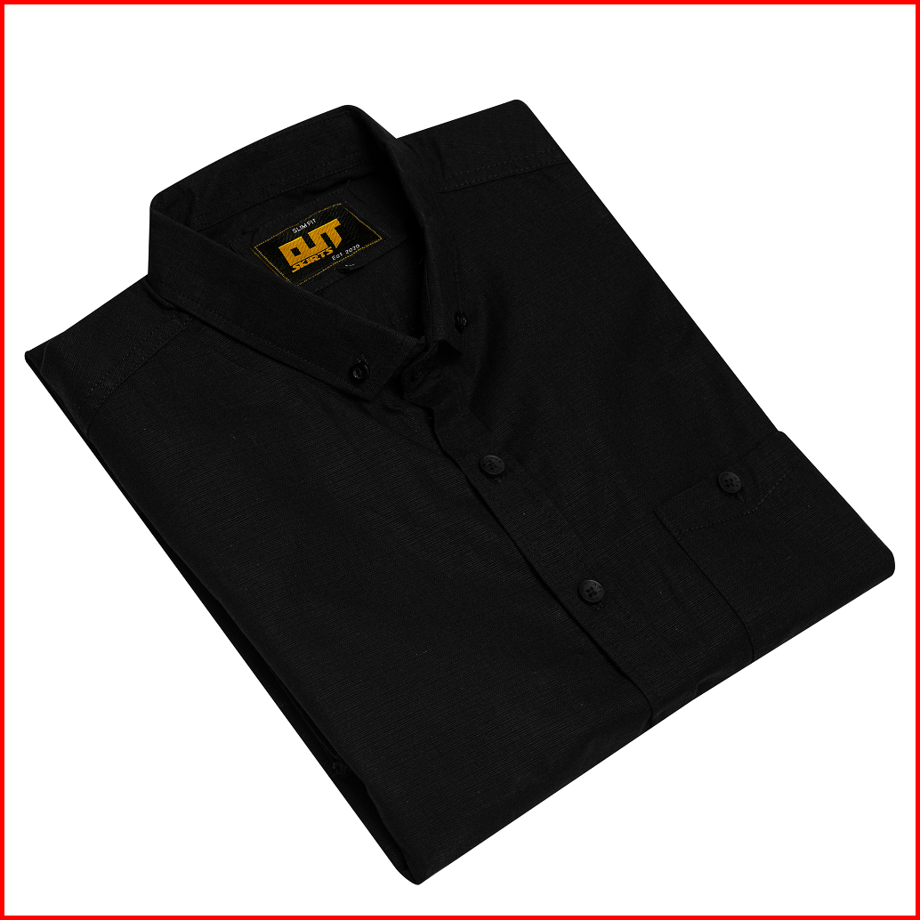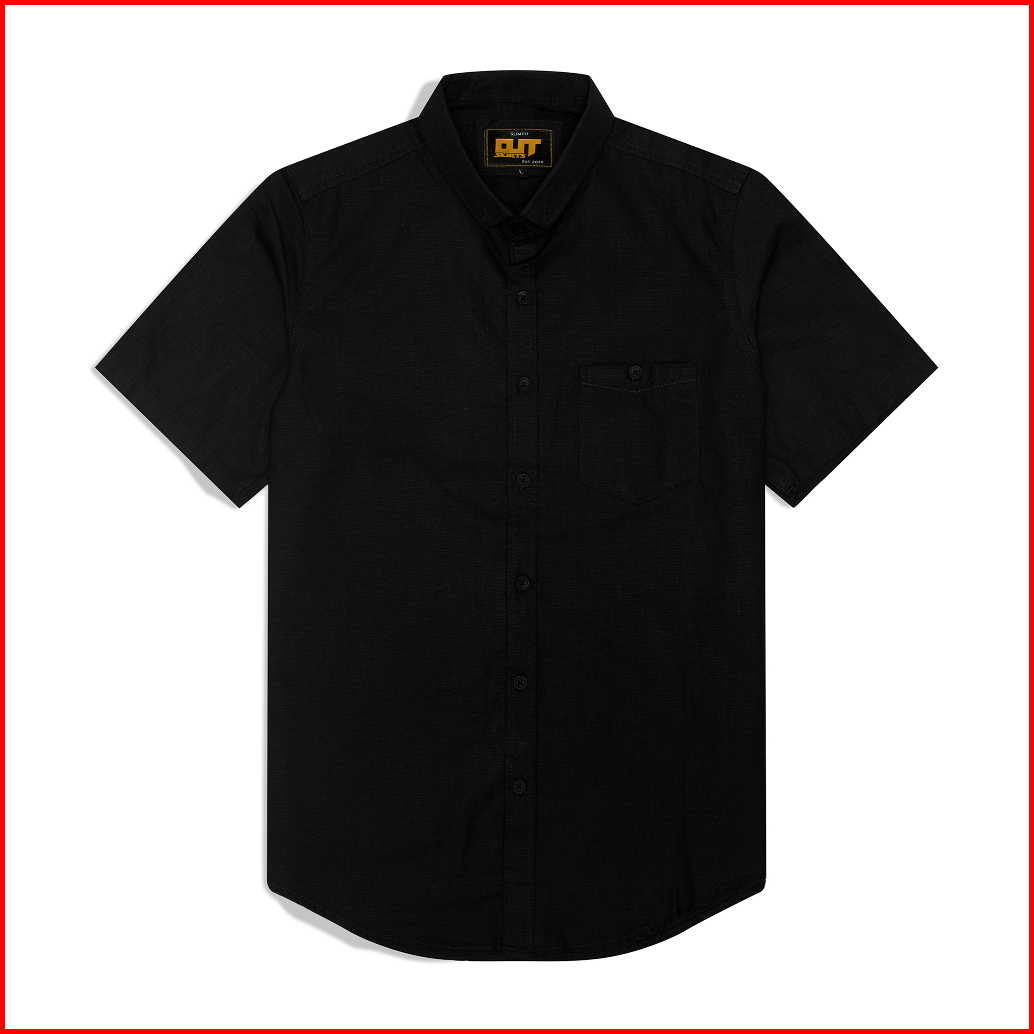 Outskirts - Short Sleeves Shirt Black Kemeja Polos Hitam Pria Lengan Pendek Casual Slimfit