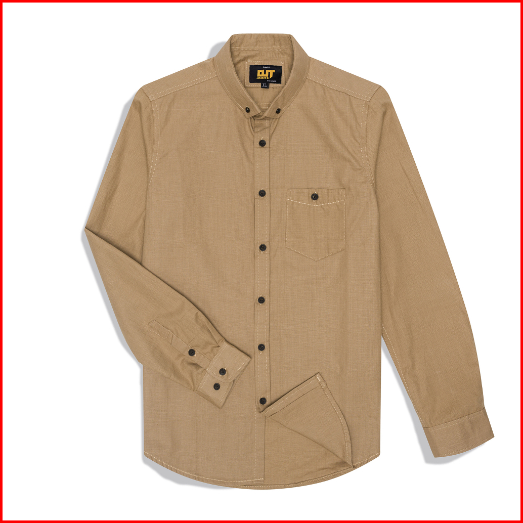 Outskirts - Long Sleeve Shirts Brown Kemeja Polos Coksu Pria Lengan Panjang Casual Slimfit