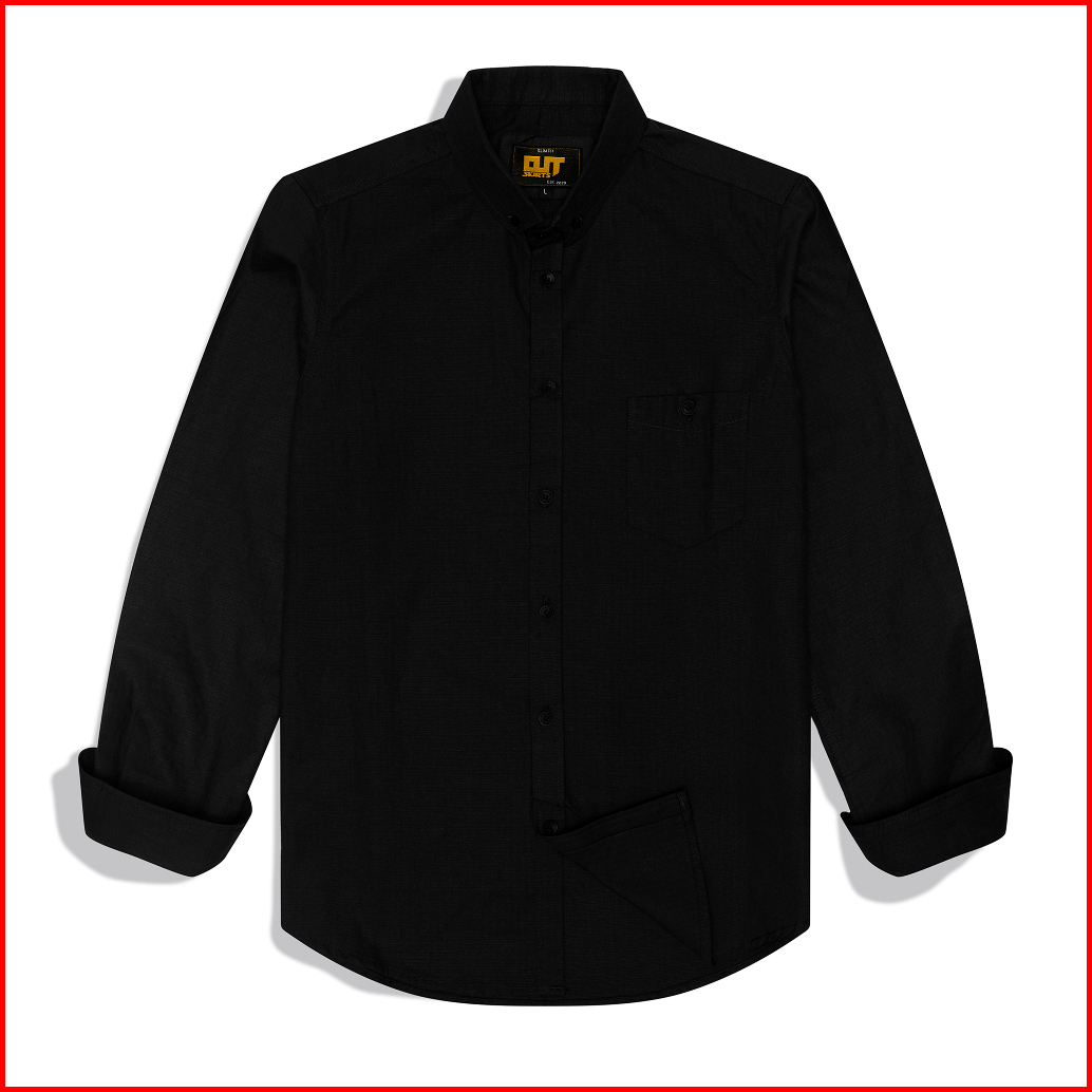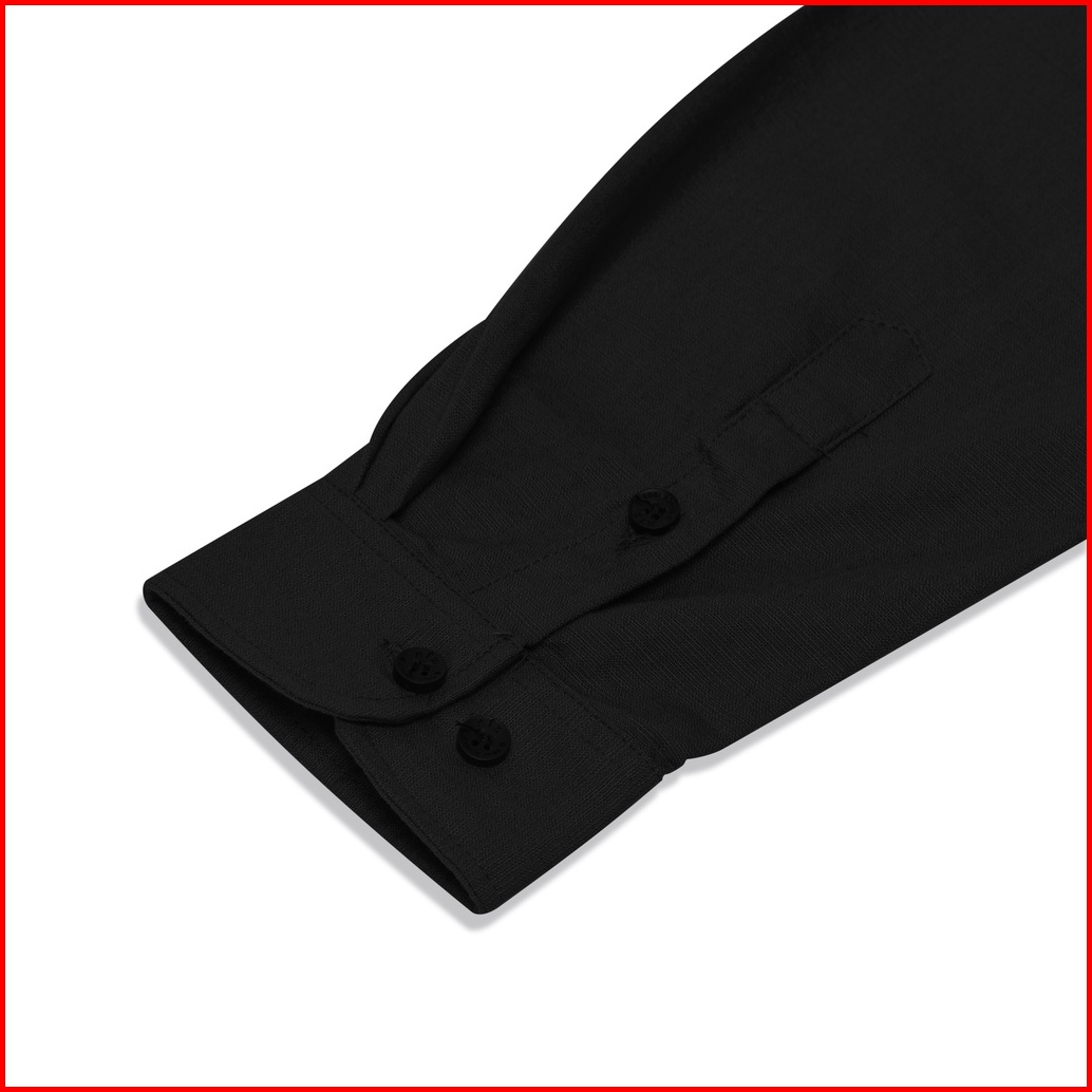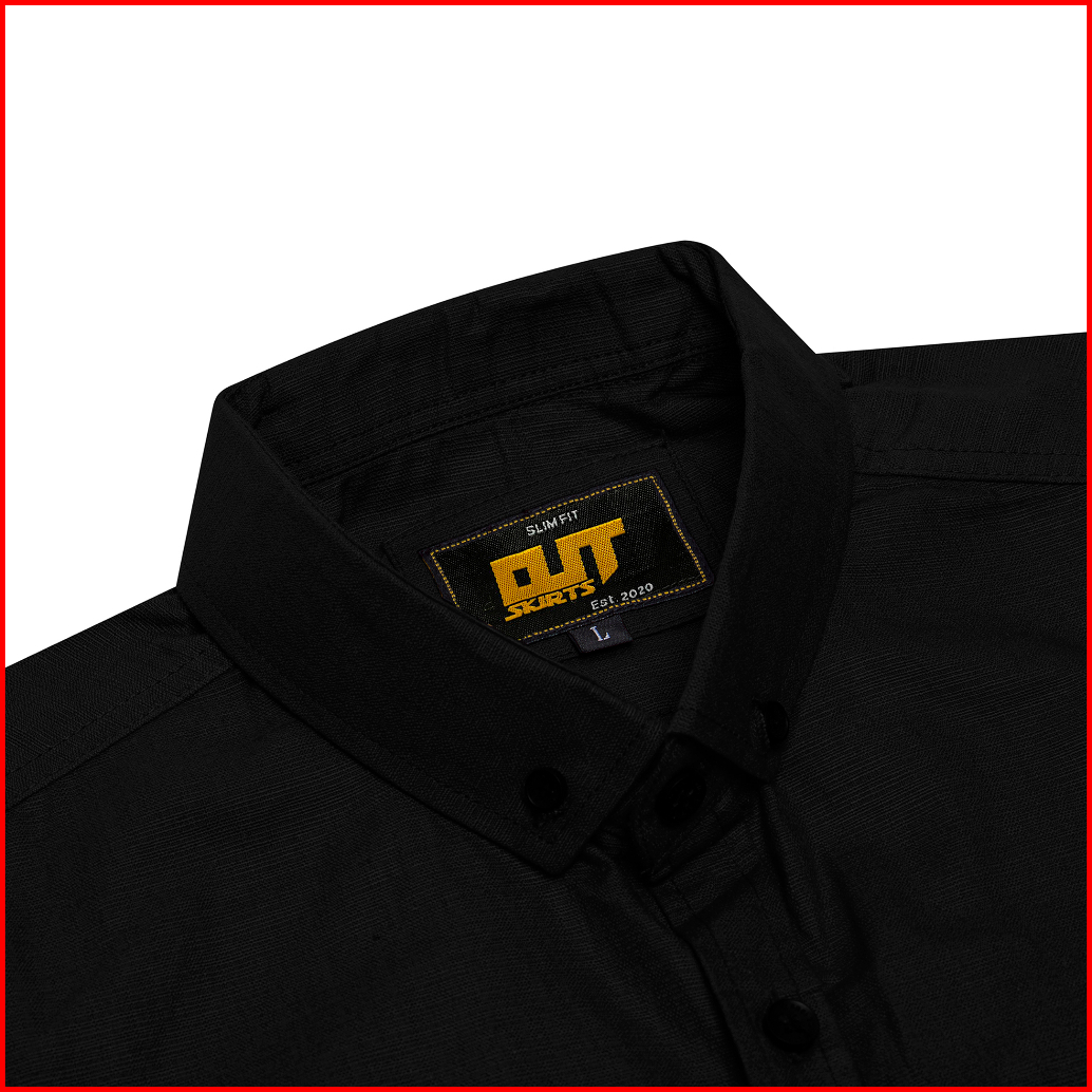 Outskirts - Long Sleeve Shirt Black Kemeja Polos Hitam Pria Lengan Panjang Casual Slimfit