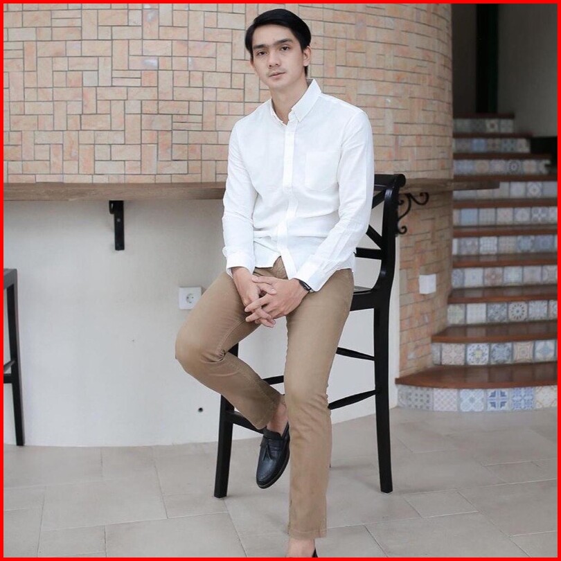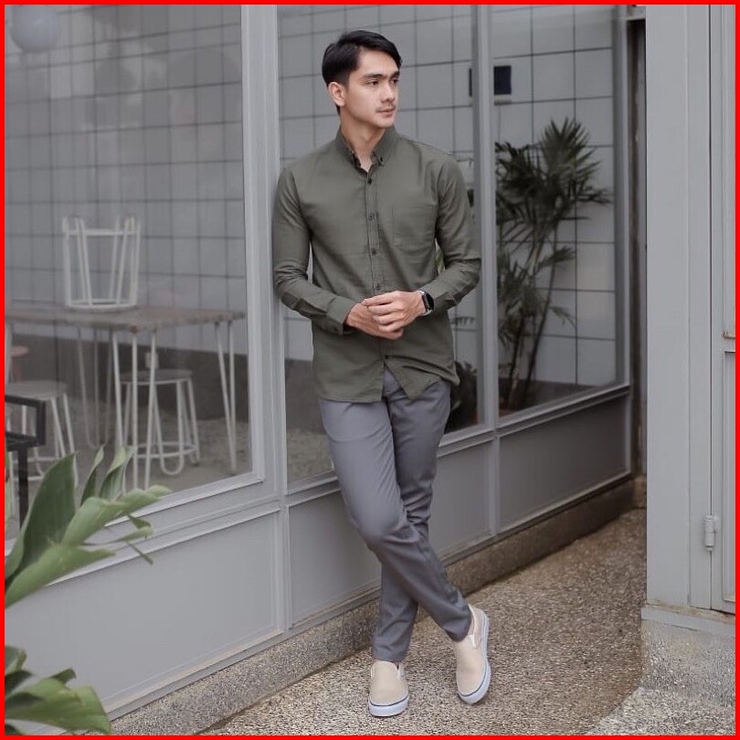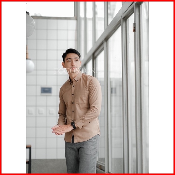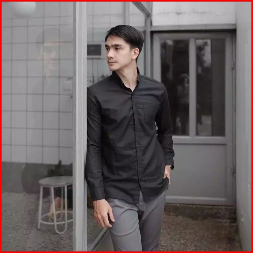 Kemeja Cowok Polos Lengan Panjang Hem Pria Kantor Hitam Navy Putih Maron