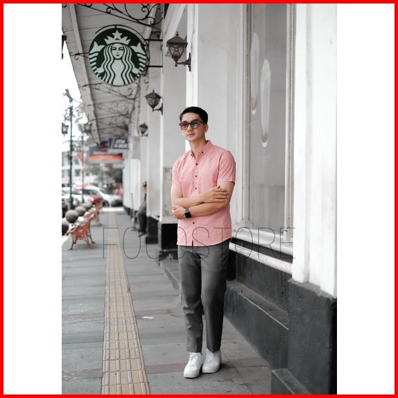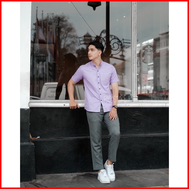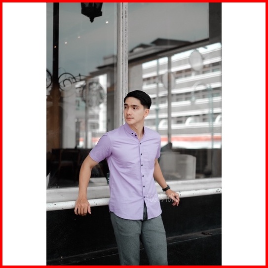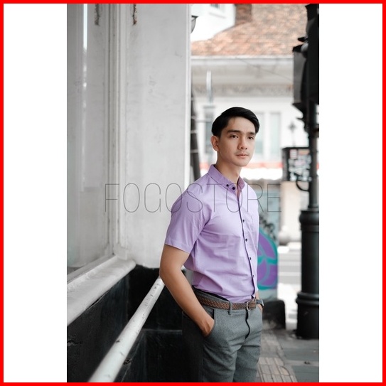 Kemeja Pria Basic Polos Pendek Lilac Premium 1468d