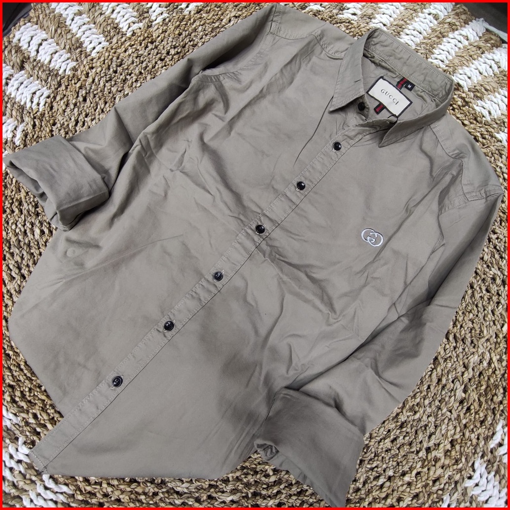 Kemeja Gucci Polos Pria Lengan Panjang Kemeja Formal Pria Bahan Catton Slim Fitt Kemeja Kerja Kantor Terbaru