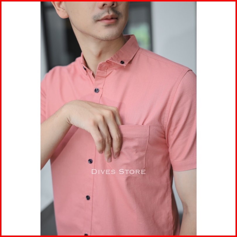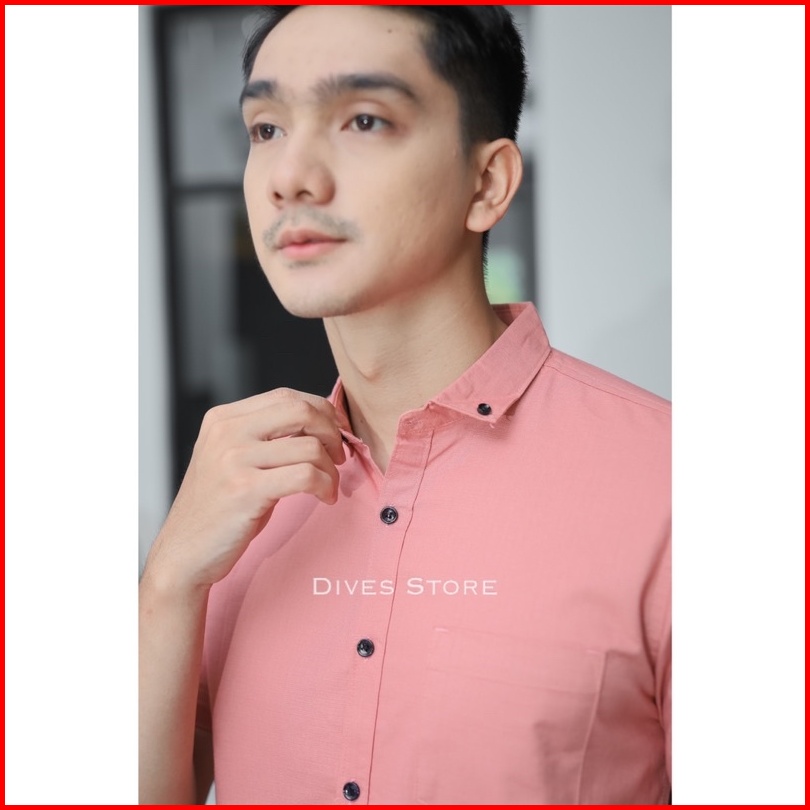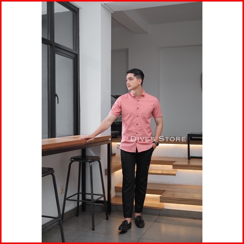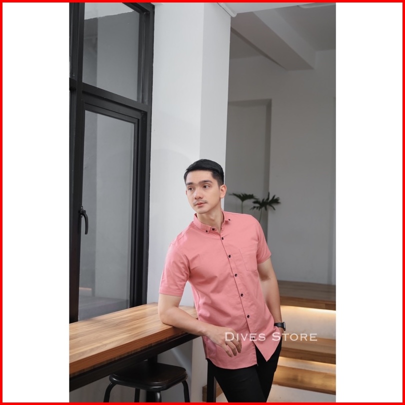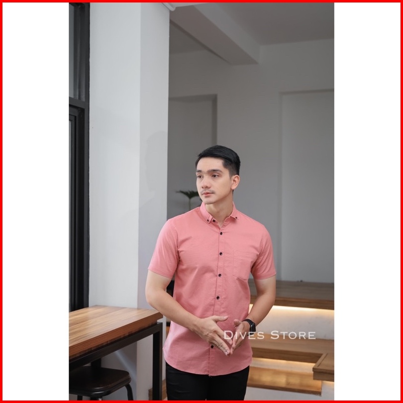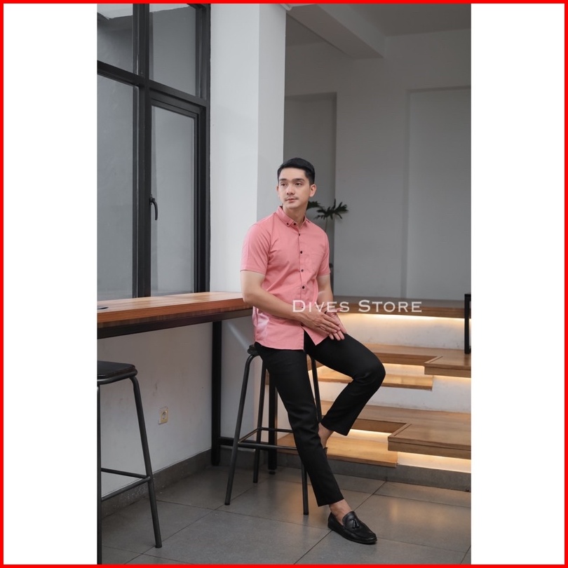 Divesstore Kemeja Polos Pria Lengan Pendek Basic Kasual Kantoran Pink Salam Kemeja Cowok Atasan Pria