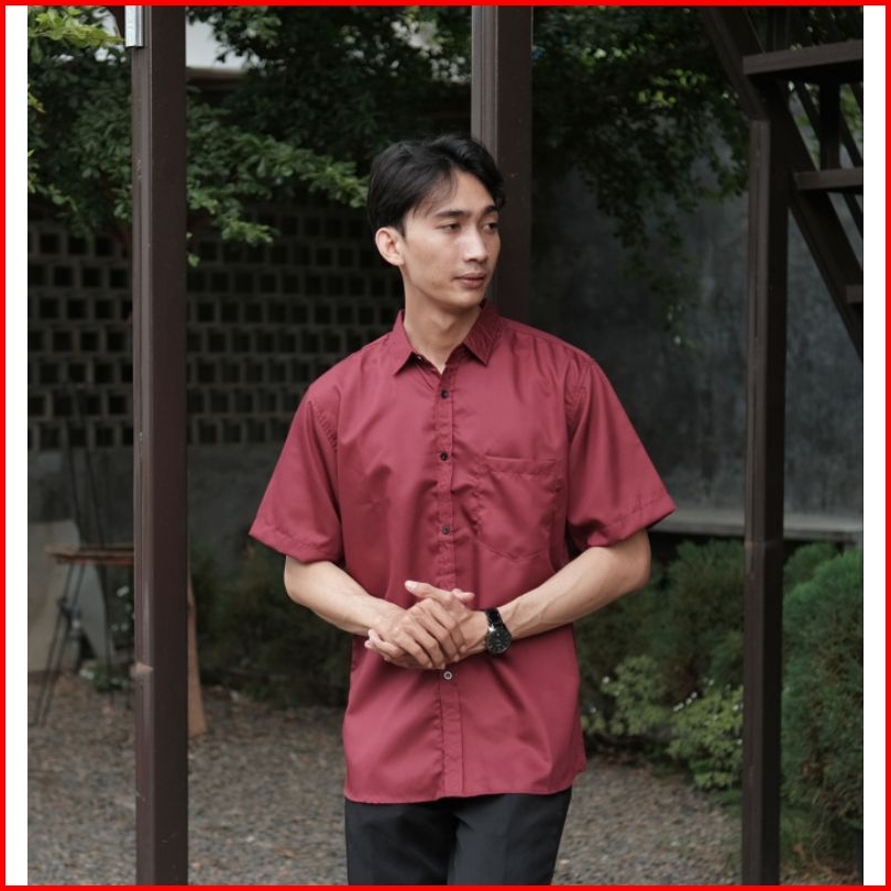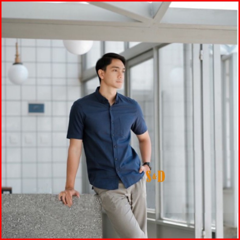 Kemeja Pria Polos Lengan Pendek Slim Fit Toyobo Eksklusif.