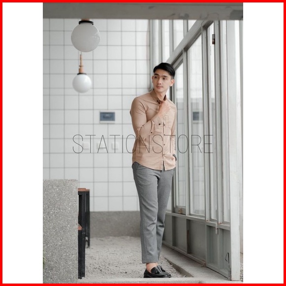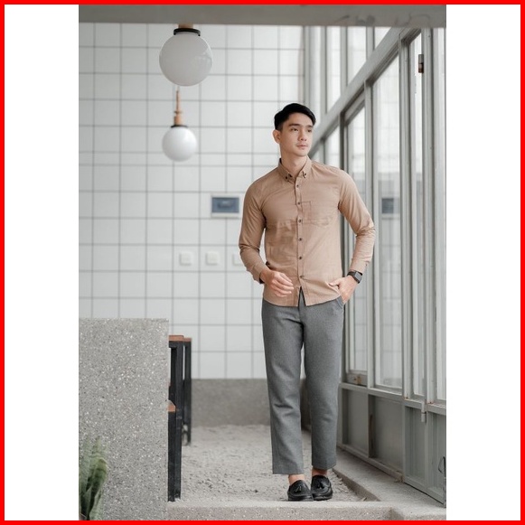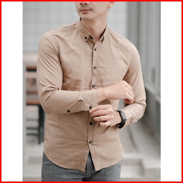 Kemeja Pria Premium Polos Lengan Panjang Mocca