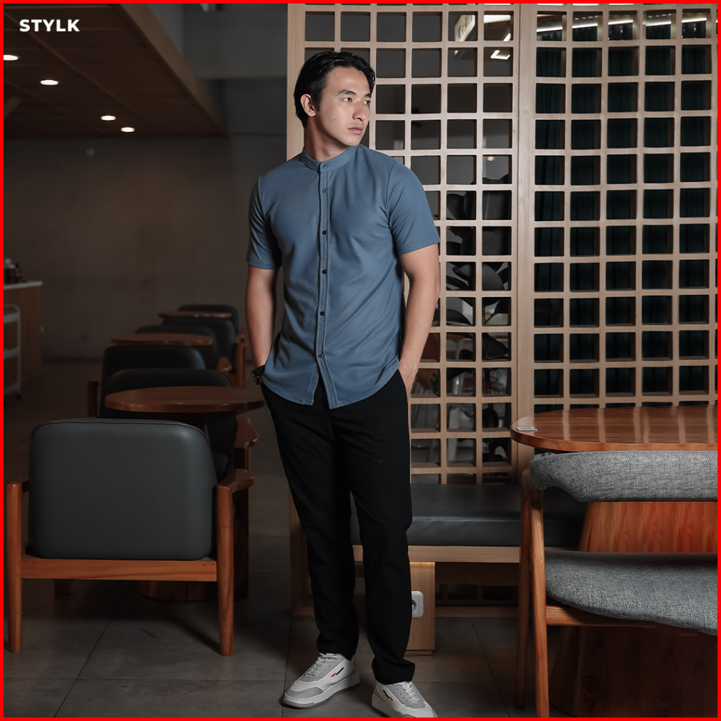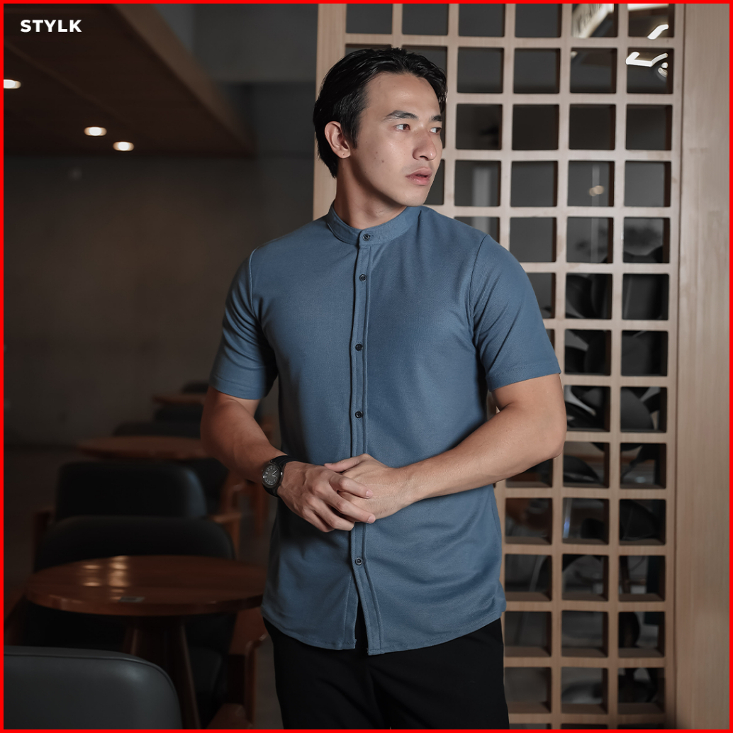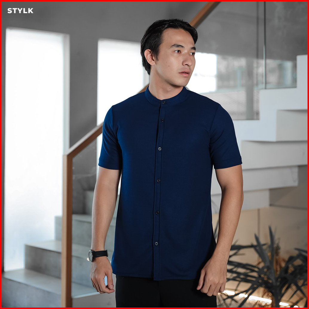 Stylelaki Lapique - Kemeja Navy Pria Casual Lengan Pendek Slim Fit Anti Kusut Nyaman Dan Lembut