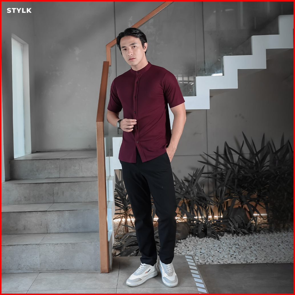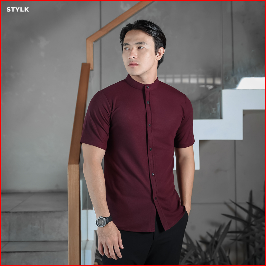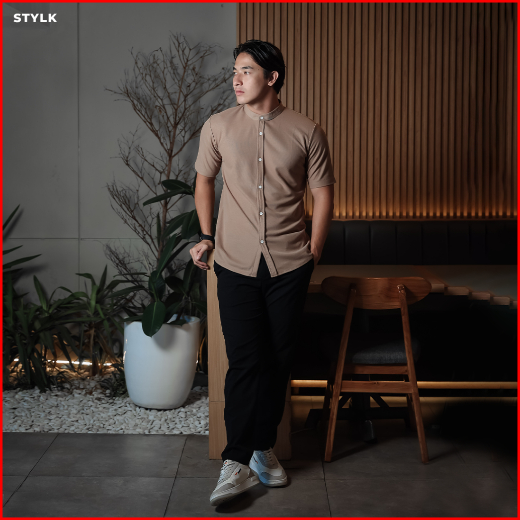 Stylelaki Lapique - Kemeja Navy Pria Casual Lengan Pendek Slim Fit Anti Kusut Nyaman Dan Lembut