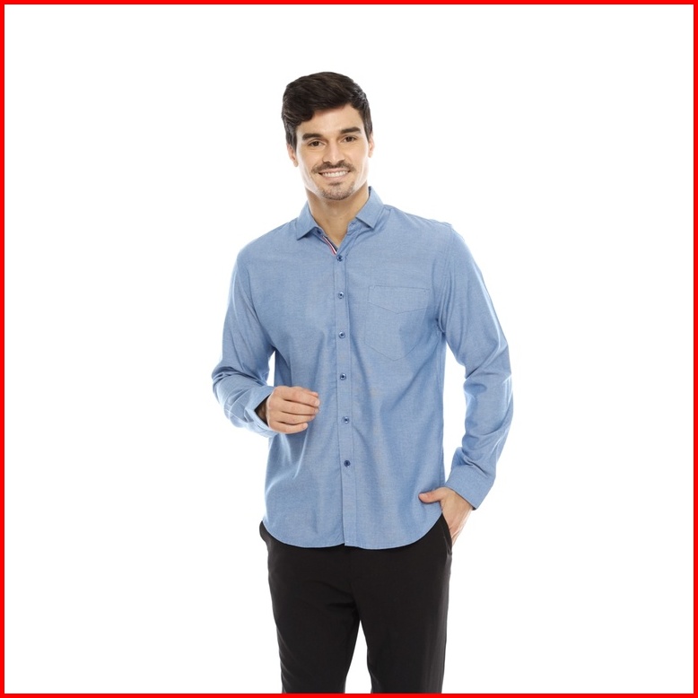Promo Masker Kemeja Kerja Lengan Panjang Polos Oxford Soft Blue Slimfit Baju Kemeja Pria Panjang