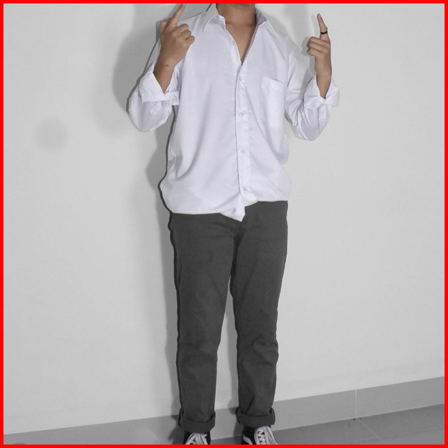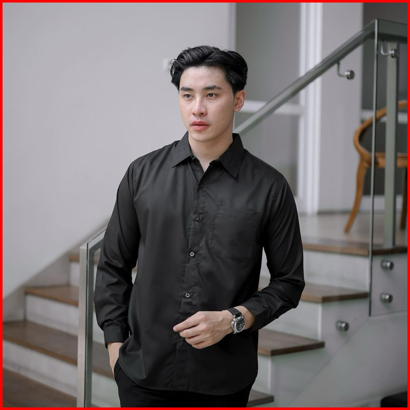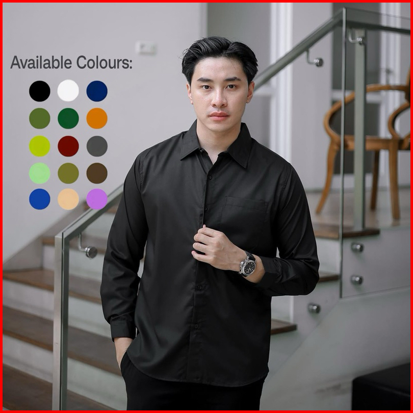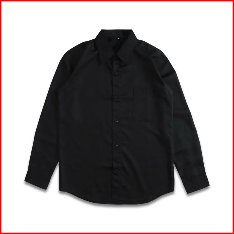 Smilesky Kemeja Pria Lengan Panjang - Kemeja Polos Cowok Formal Hitam Pique Cotton Toyobo M L Xl
