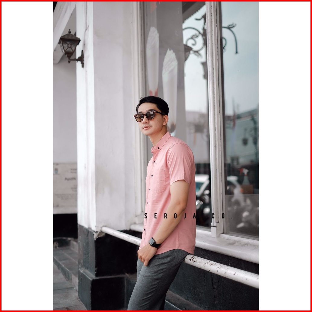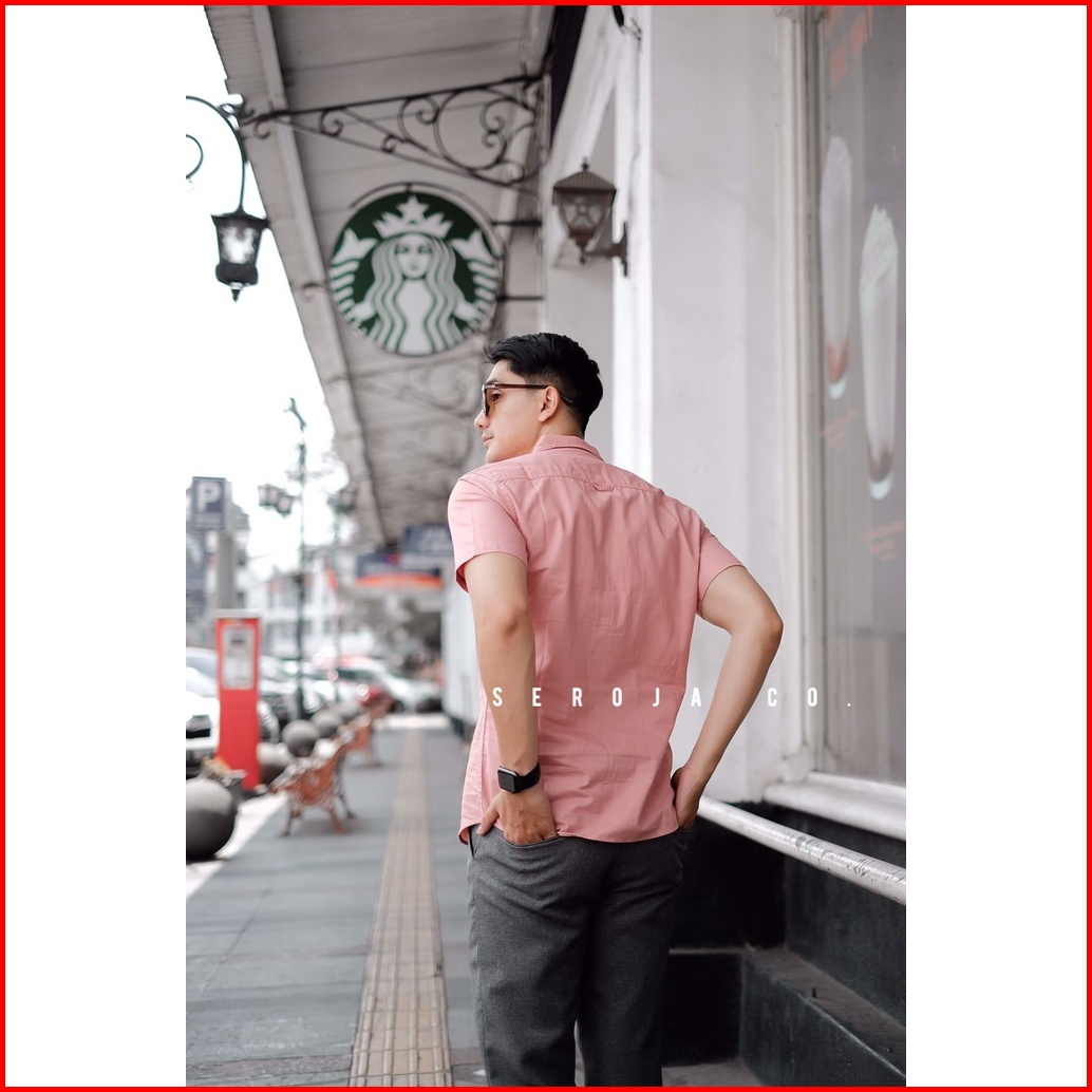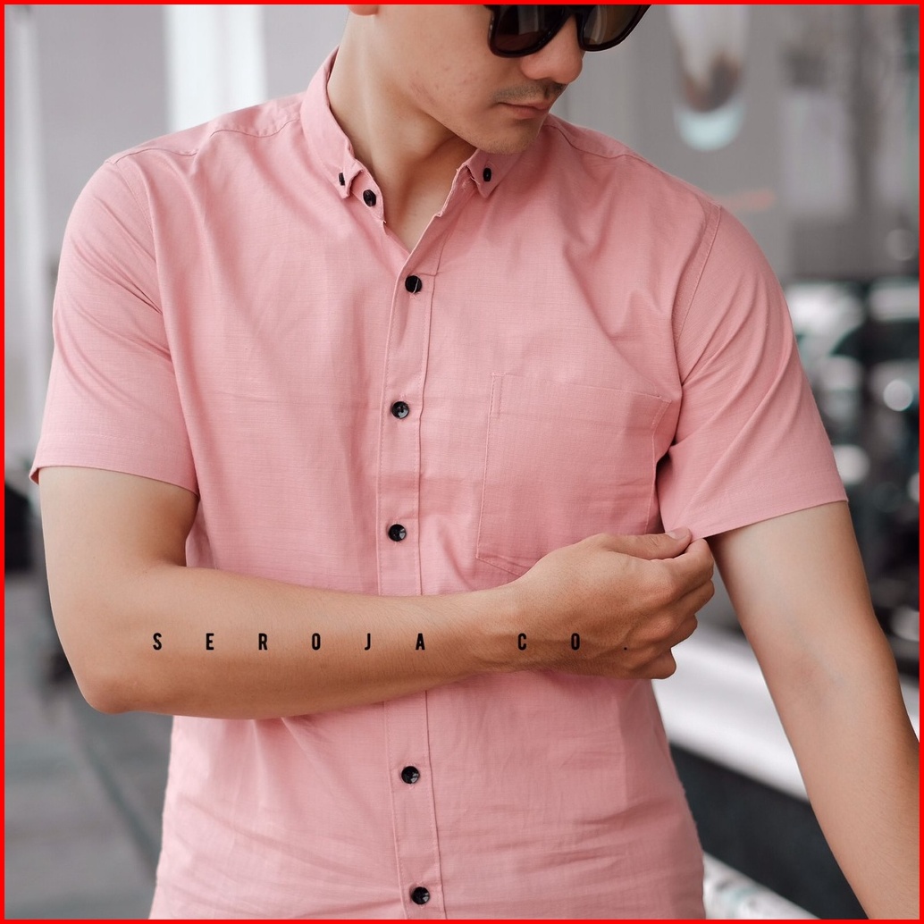 Kemeja Polos Pria Lengan Pendek Slimfit Warna Pink