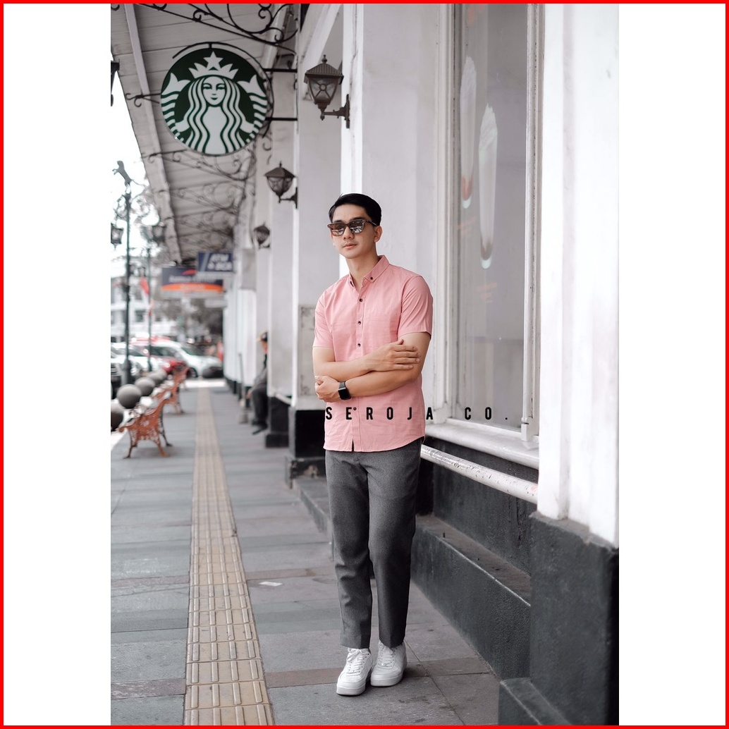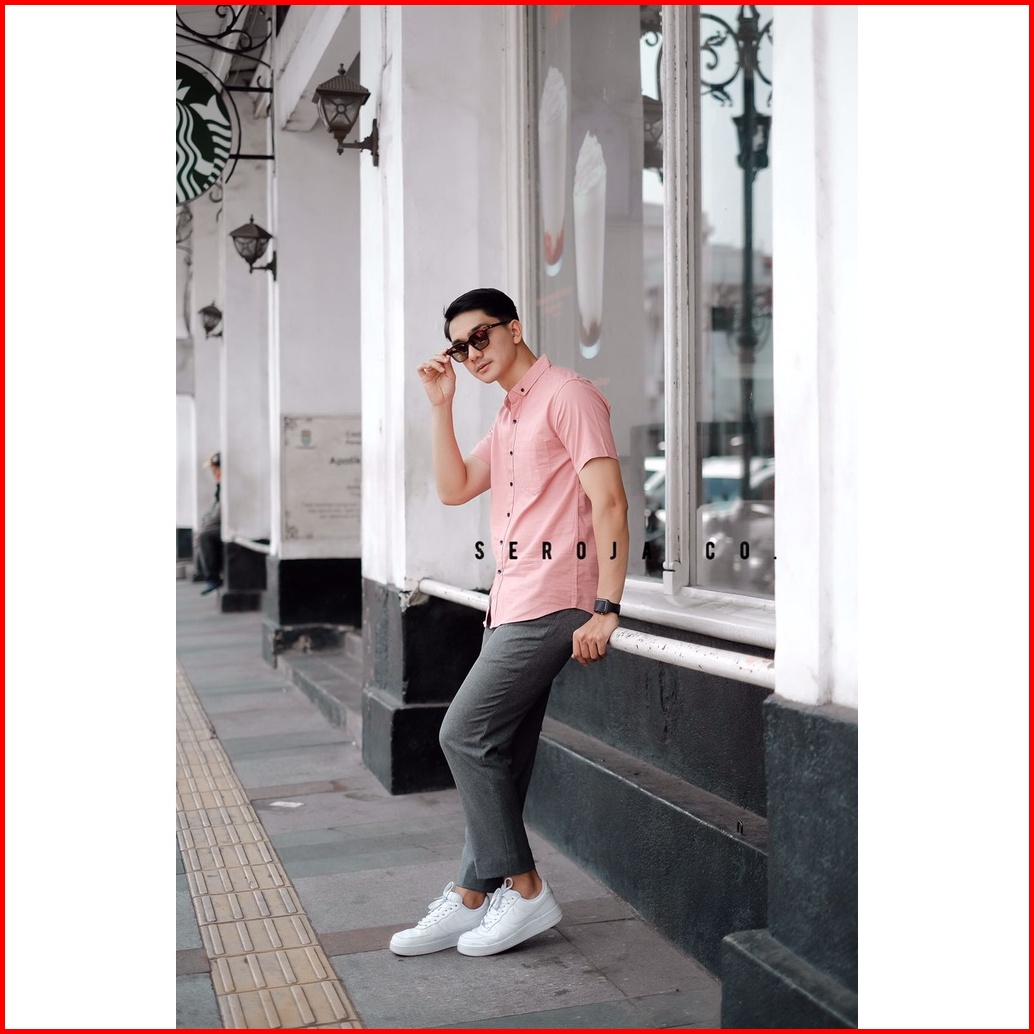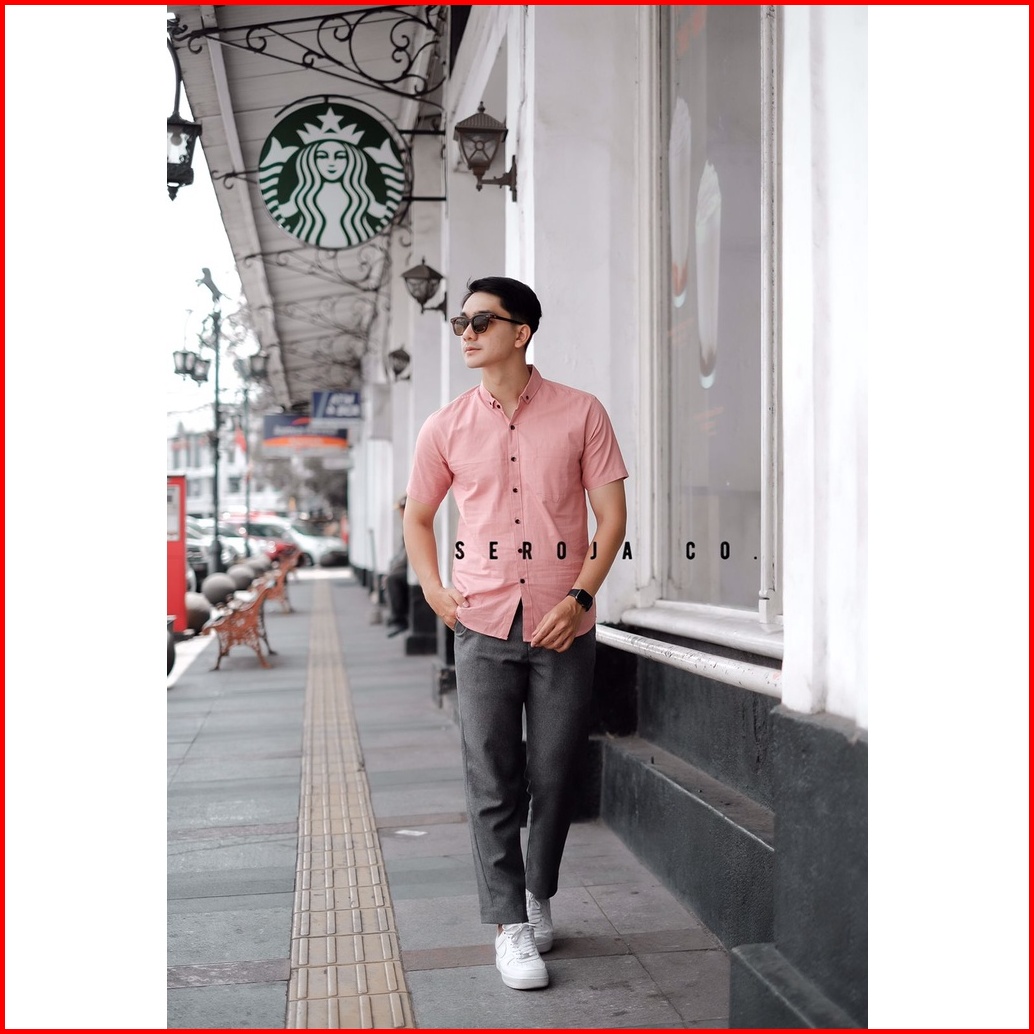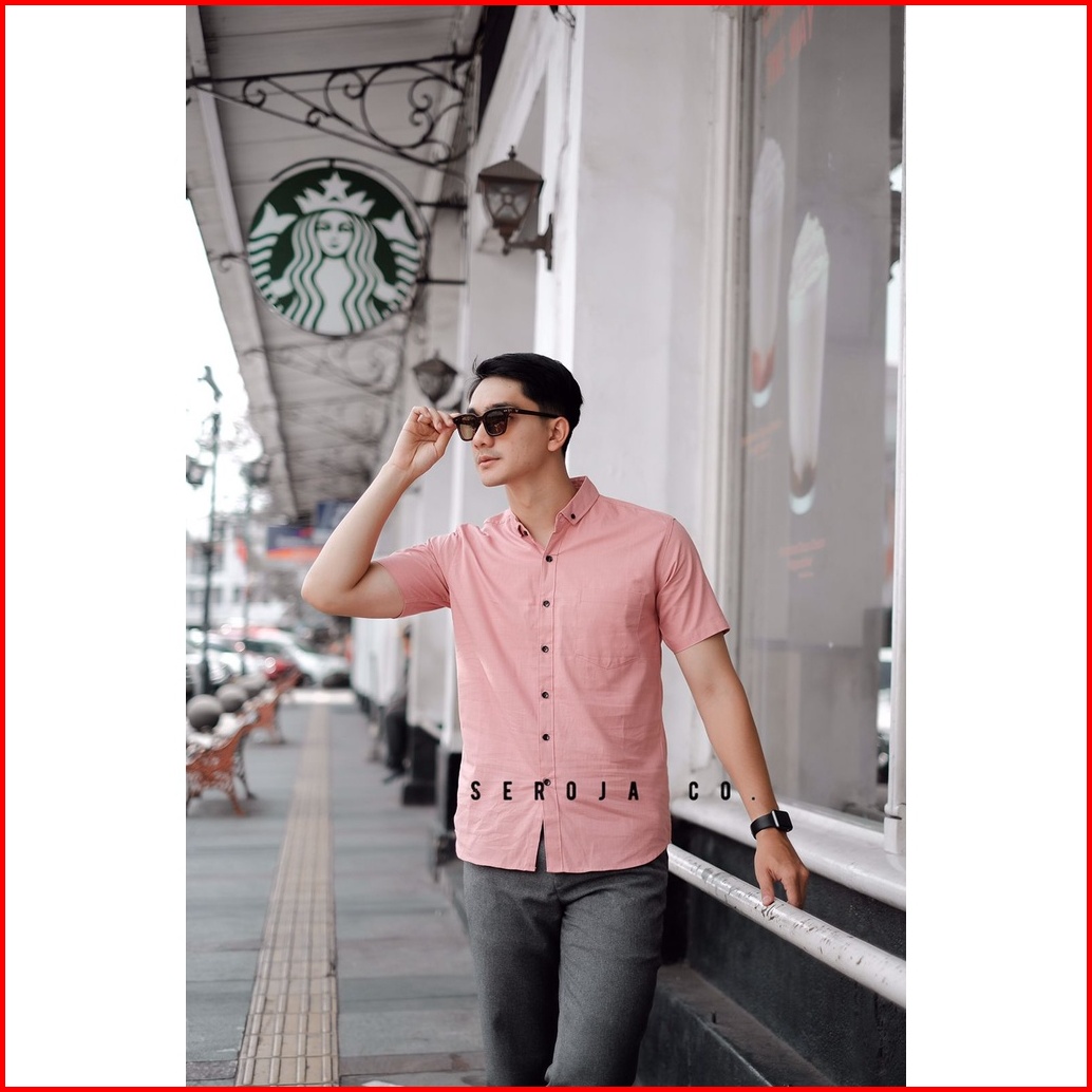 Kemeja Polos Pria Lengan Pendek Slimfit Warna Pink