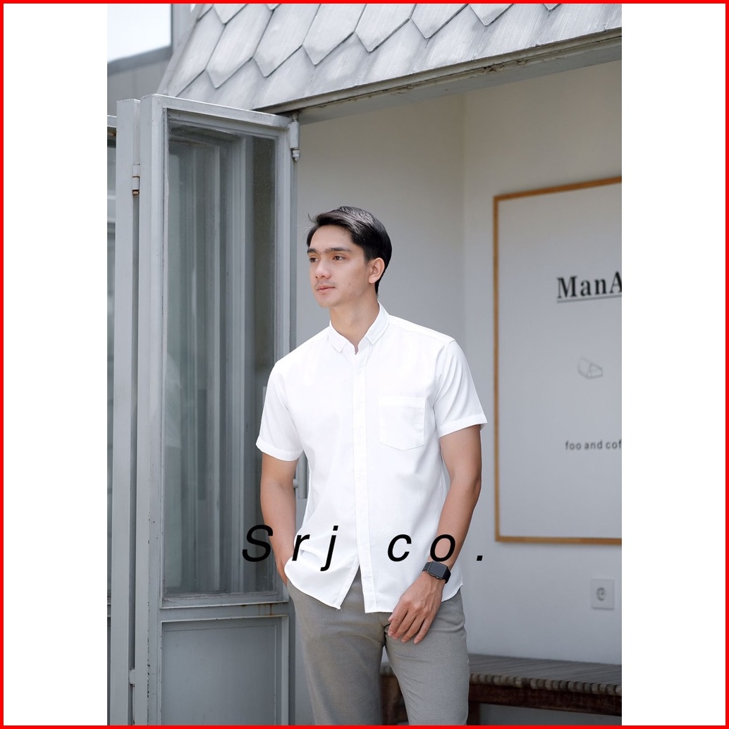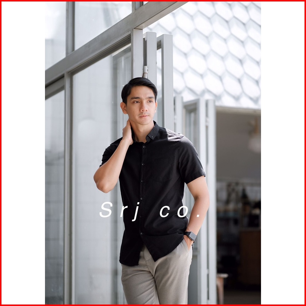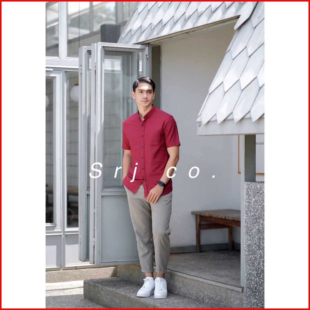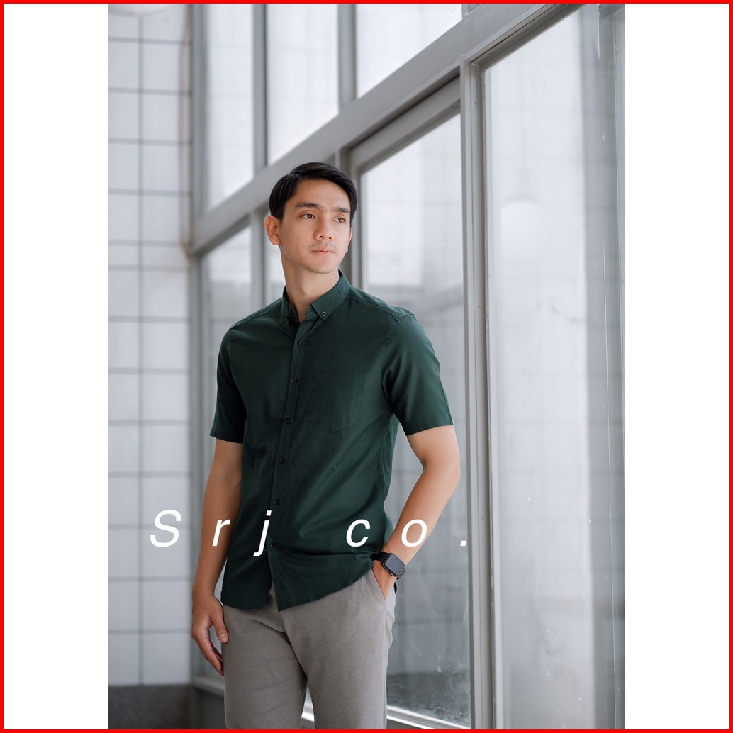 Kemeja Polos Pria Lengan Pendek Kemeja Kasual Pria Warna Hijau Botol