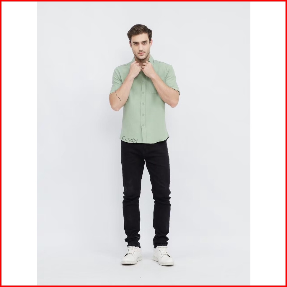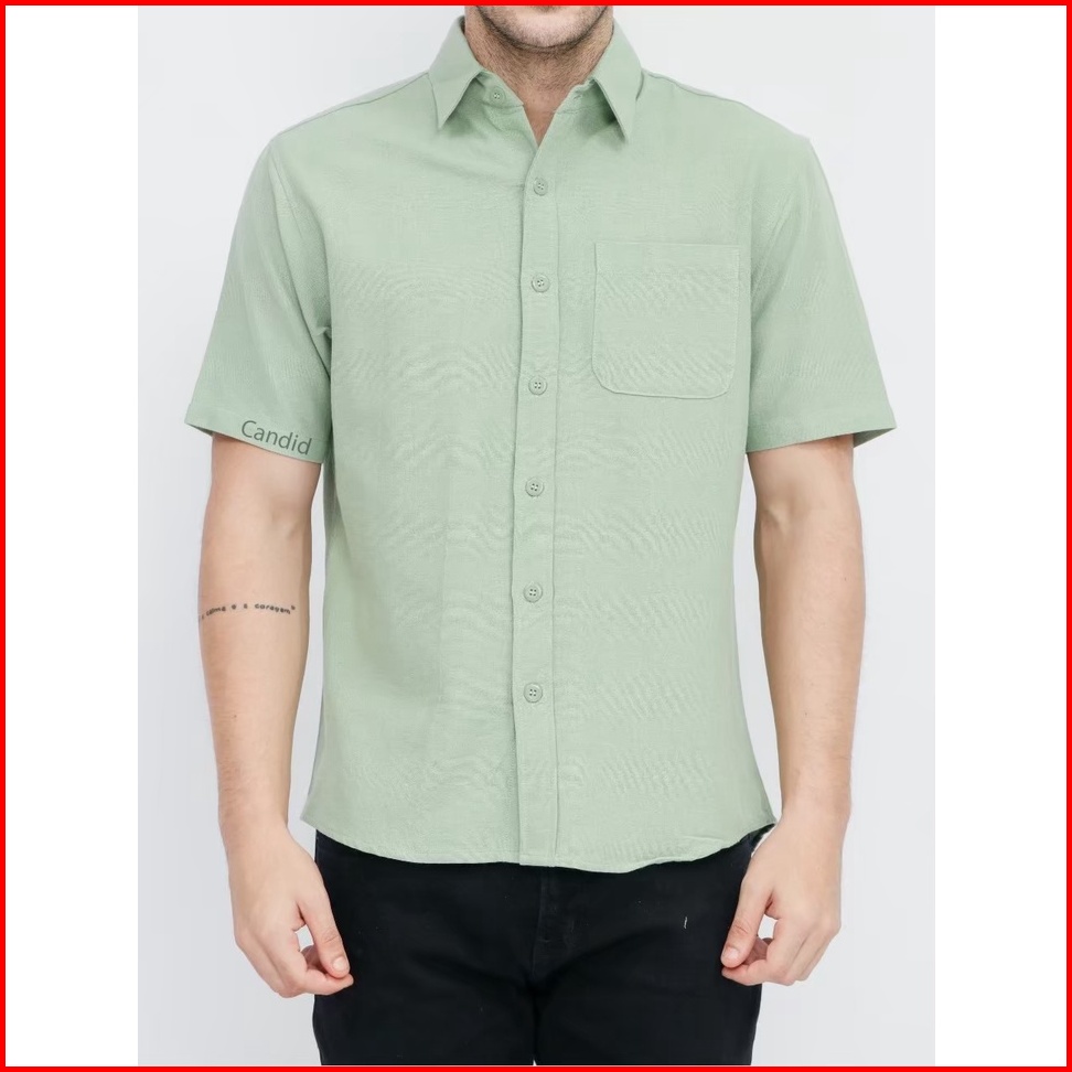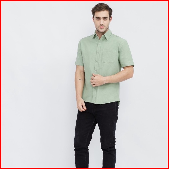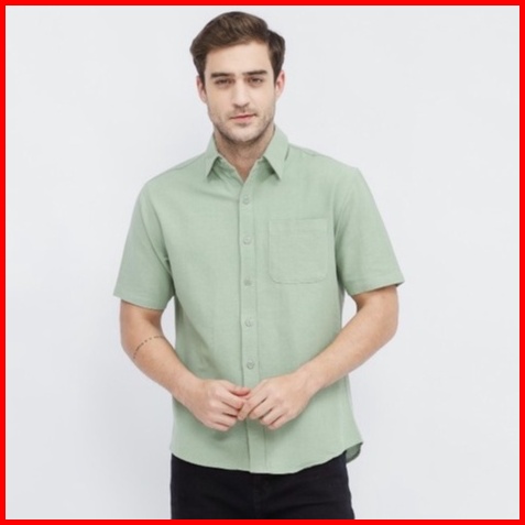 Kemeja Pria Lengan Pendek Extra Fine Cotton Linen Crepe - Sage Green
