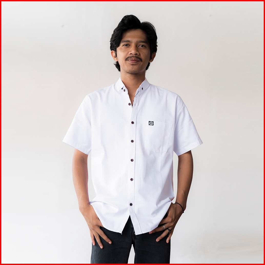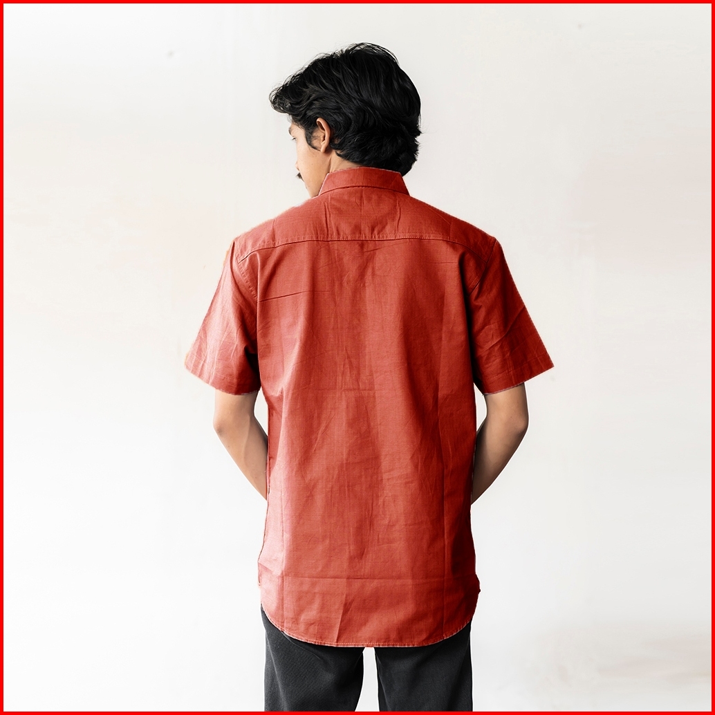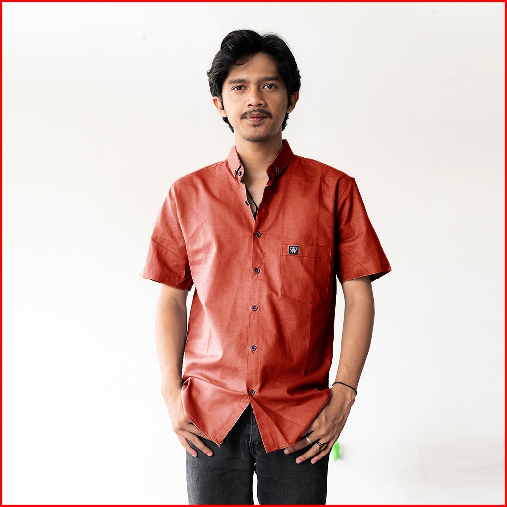 Bonang In Style - Kemeja Polos Pria Lengan Pendek Bahan Katun Warna Terakotta