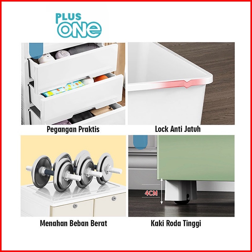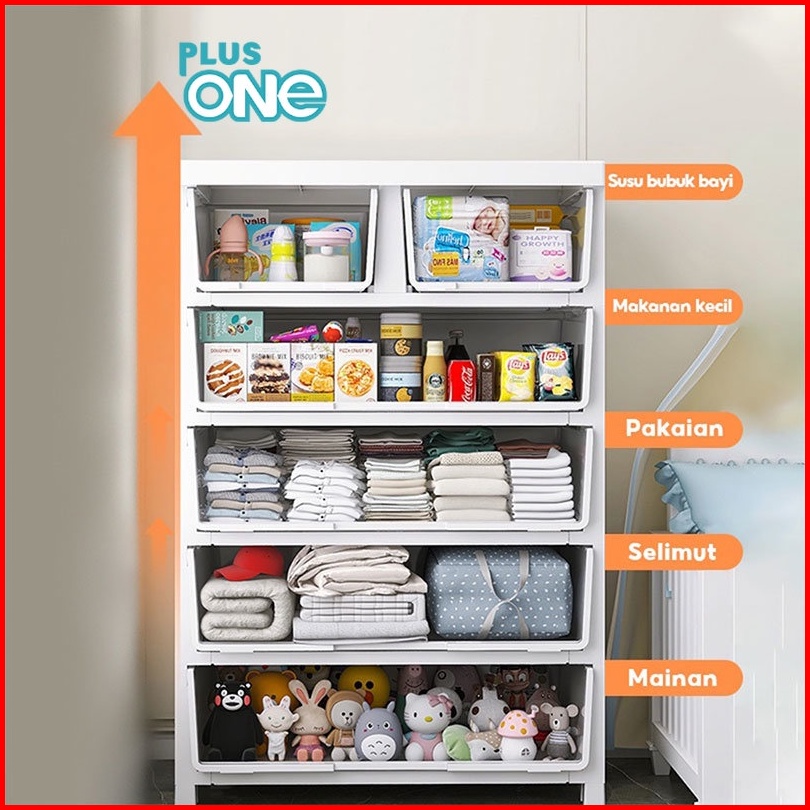 Plus One - Lemari Plastik Pakaian Dewasa Anak Jumbo 3 4 5 6 7 Susun Tingkat Kabinet Drawer - 1290
