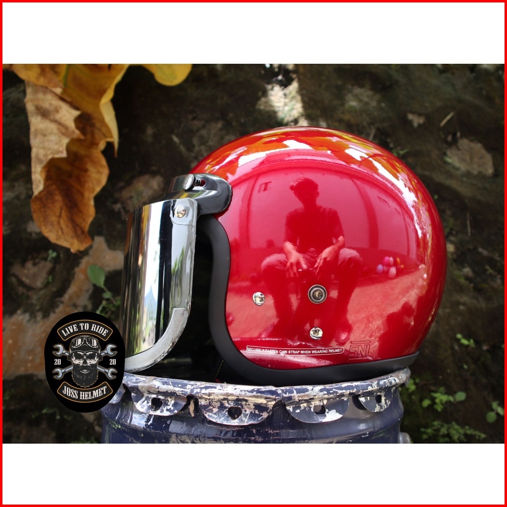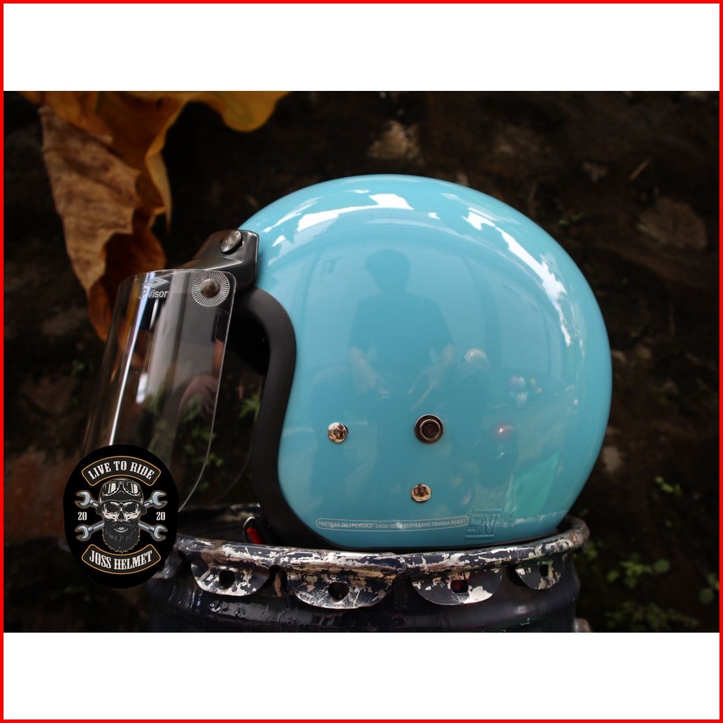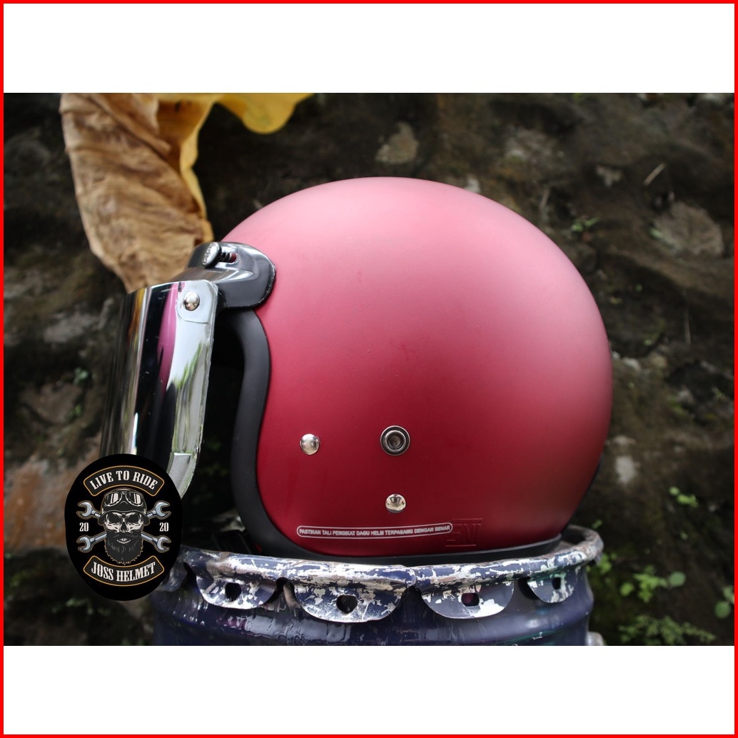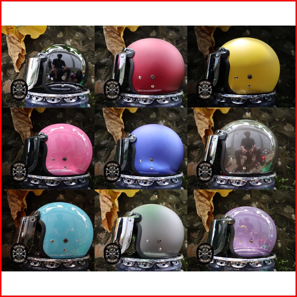 Helm Bogo Dewasa Wanita Kaca Datar Flat Injak Hitam Dop Merah Dop Abu Dop Kuning Dop Sks Sni