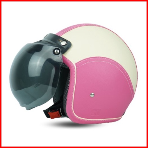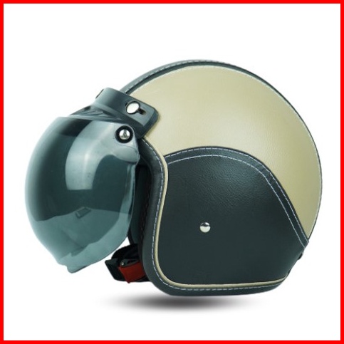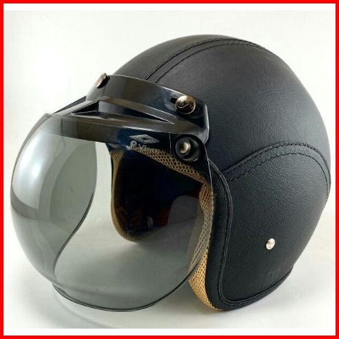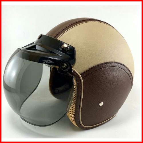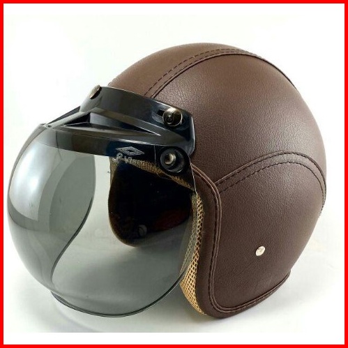 Helm Bogo Kulit Full Leher Retro Dewasa Sni Kaca Cembung Datar