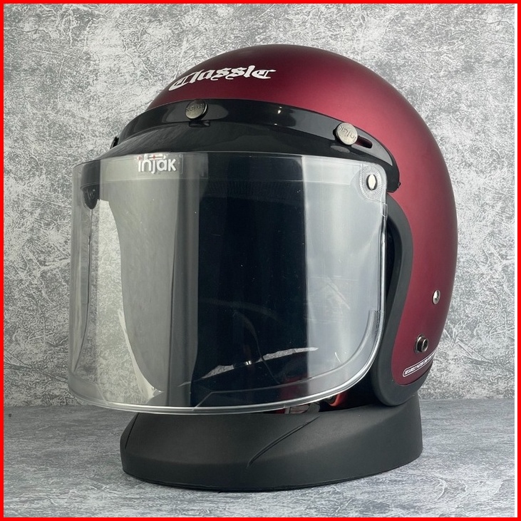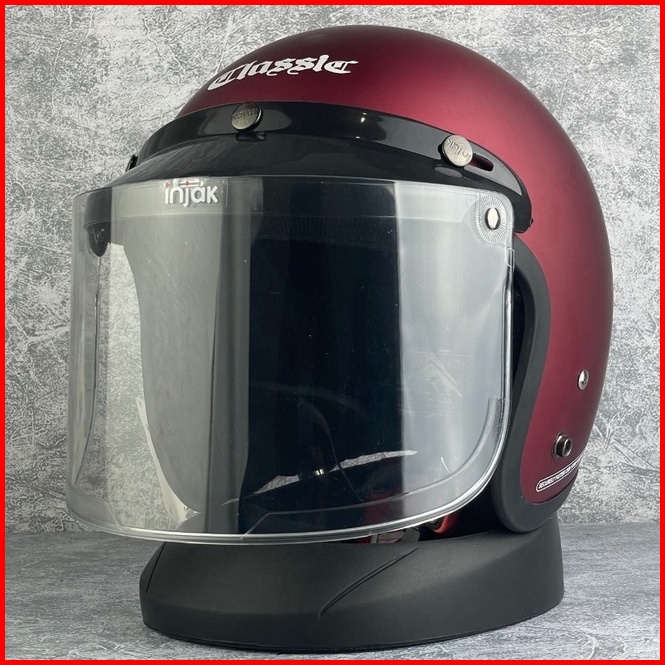 Helm Bogo Dewasa Pria Wanita Helem Retro Polos Kaca Cembung Datar Sni