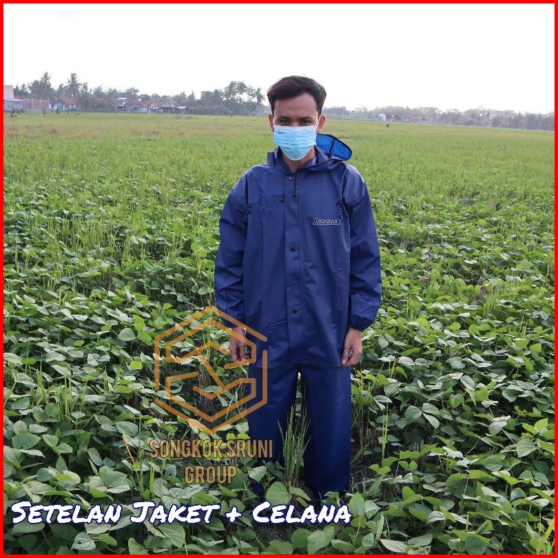 Jas Hujan Pria Wanita Sruni Original Mantel Hujan Raincoat Tebal Anti Rembes Warna Biru Merah Hijau Army Bukan Gna Batok