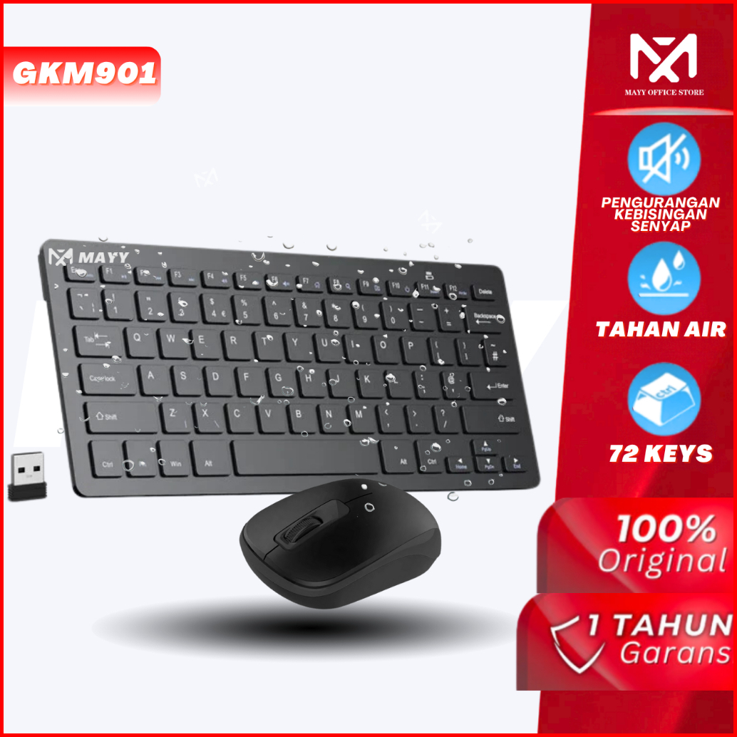 Mayy Id Wireless Keyboard Mouse Wireless Set Gaming Silent Laptop Komputer Mini Tipis-gkm901-hitam Keyboard Set Mouse Wi