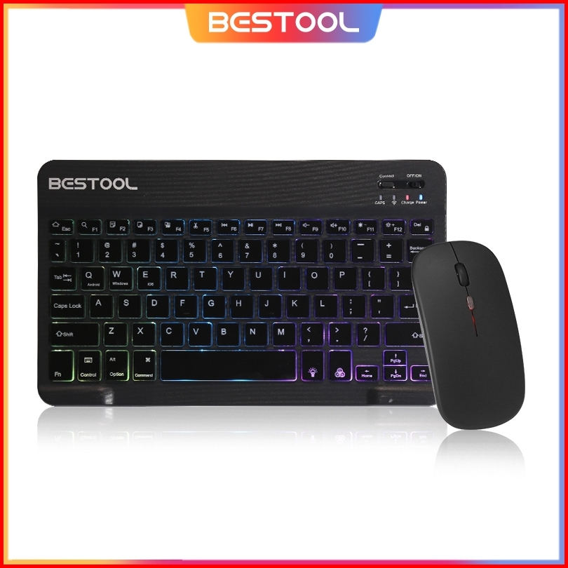 Bestool 10 Inch Backlit Backlight Wireless Keyboard And Mouse Led Colorful Bluetooth Keyboard For Ipad Laptop Android Ip