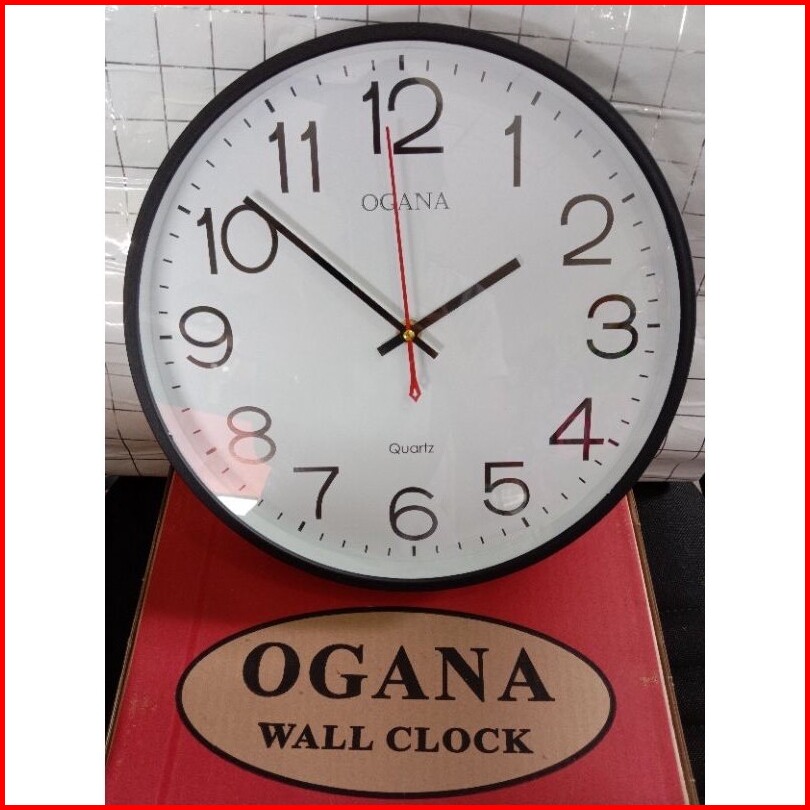 Jam Dinding Polos Ogana Angka Besar 31cm List Tebal Hitam Putih Free Styrofoam Pack Dekorasi Jam