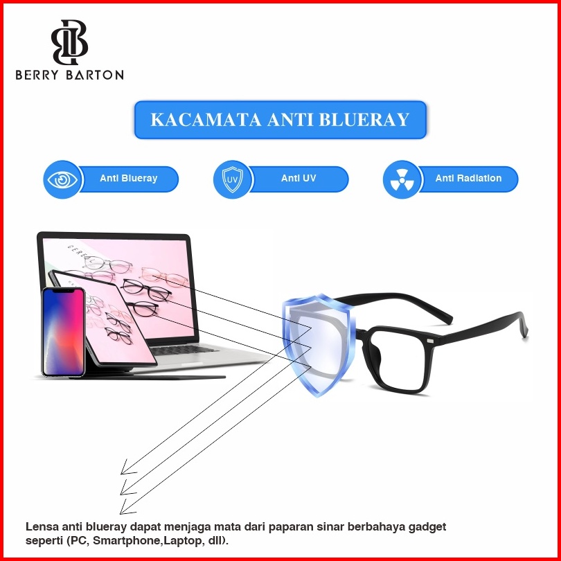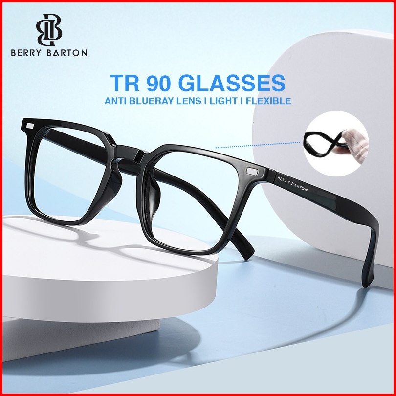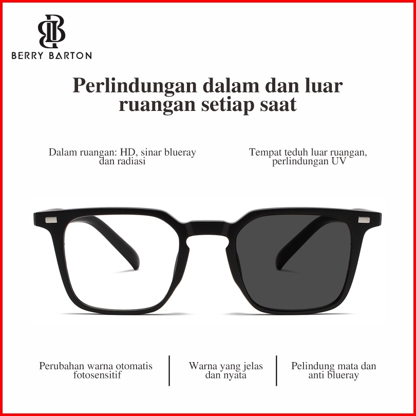 Berrybarton Kacamata Anti Radiasi Photocromic Lensa Minus Anti Blueray Pria Wanita Tr 90 Bentuk Kotak Lentur Anti Silau