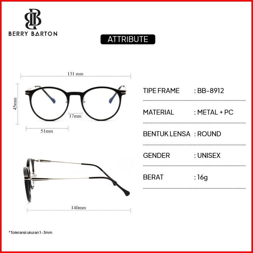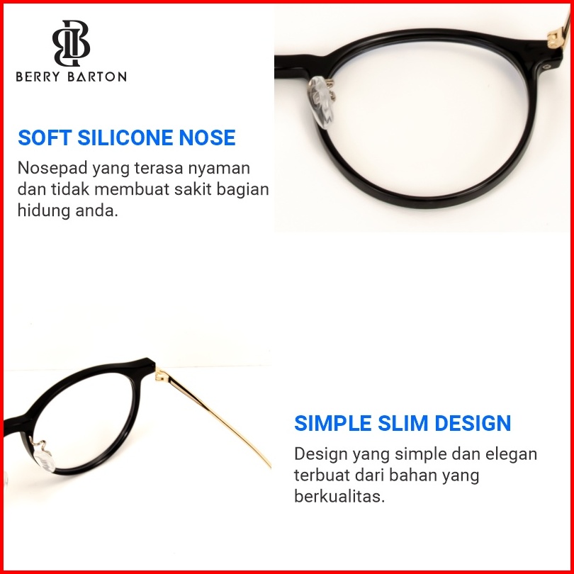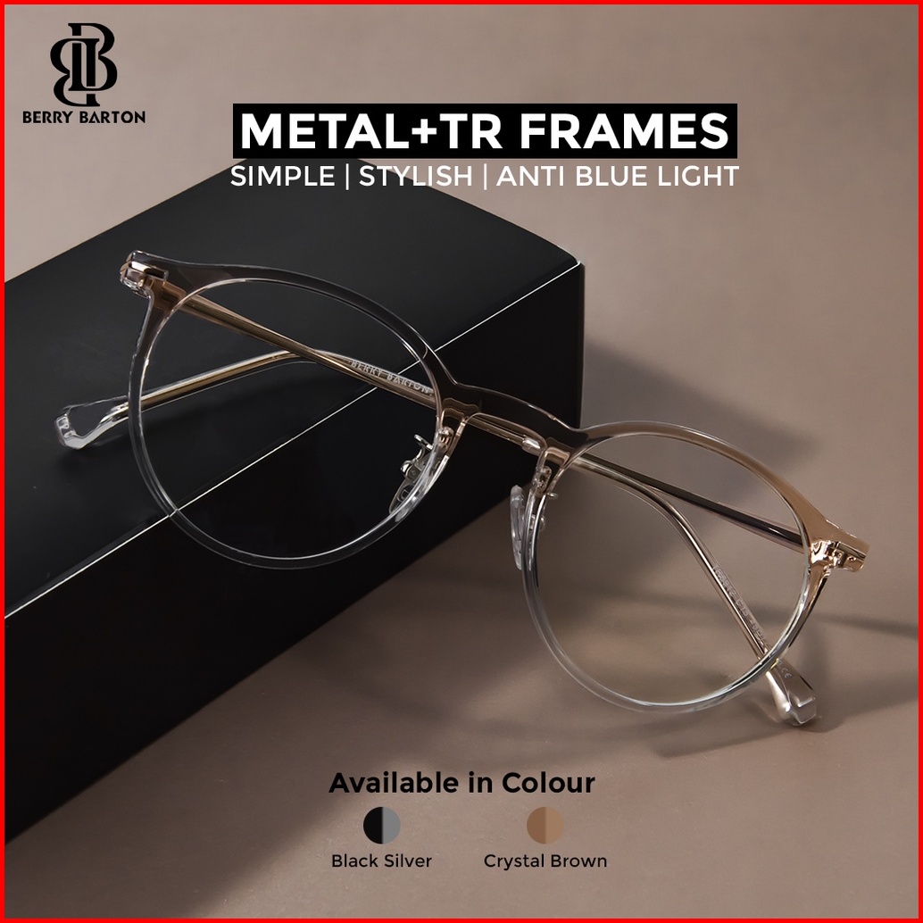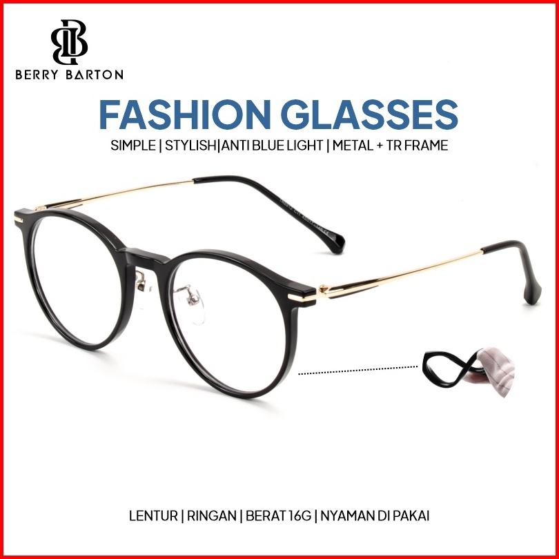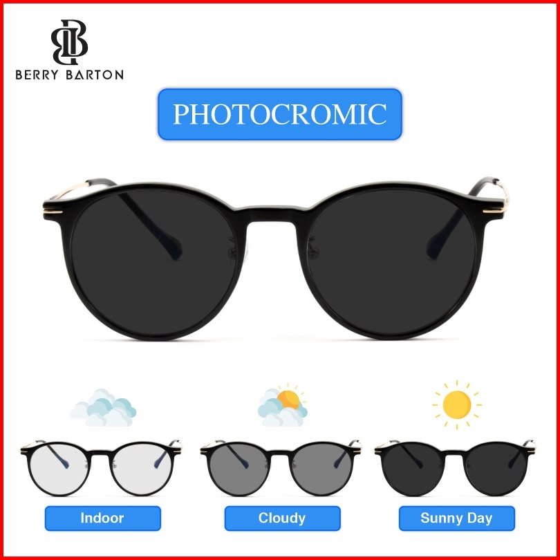 Berrybarton Kacamata Bulat Metal Pc Anti Radiasi Blueray Photocromic Pria Wanita 8912
