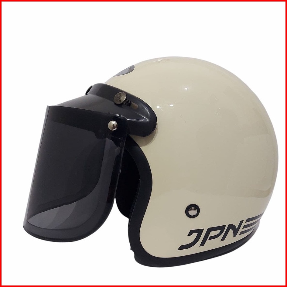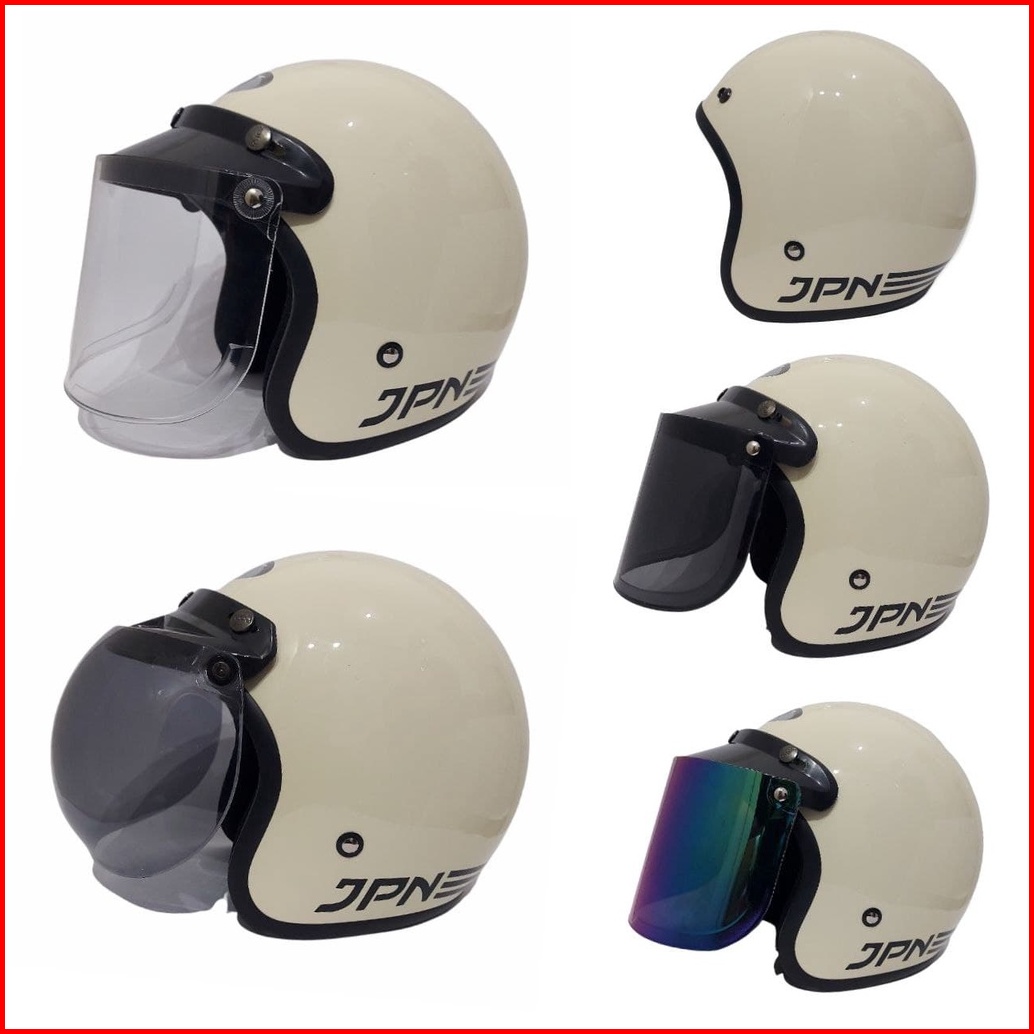 Jpn Cream Glossy Helmet Motor Helm Bogo Retro Polos Pria Wanita Paket Kaca