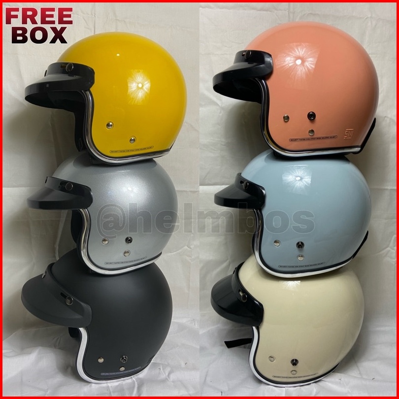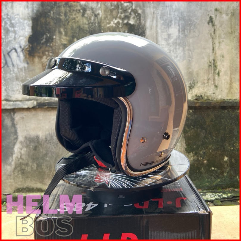Helmbos Helm Retro Lis Chrome Original Pet Full Leher Sni Free Peking Box