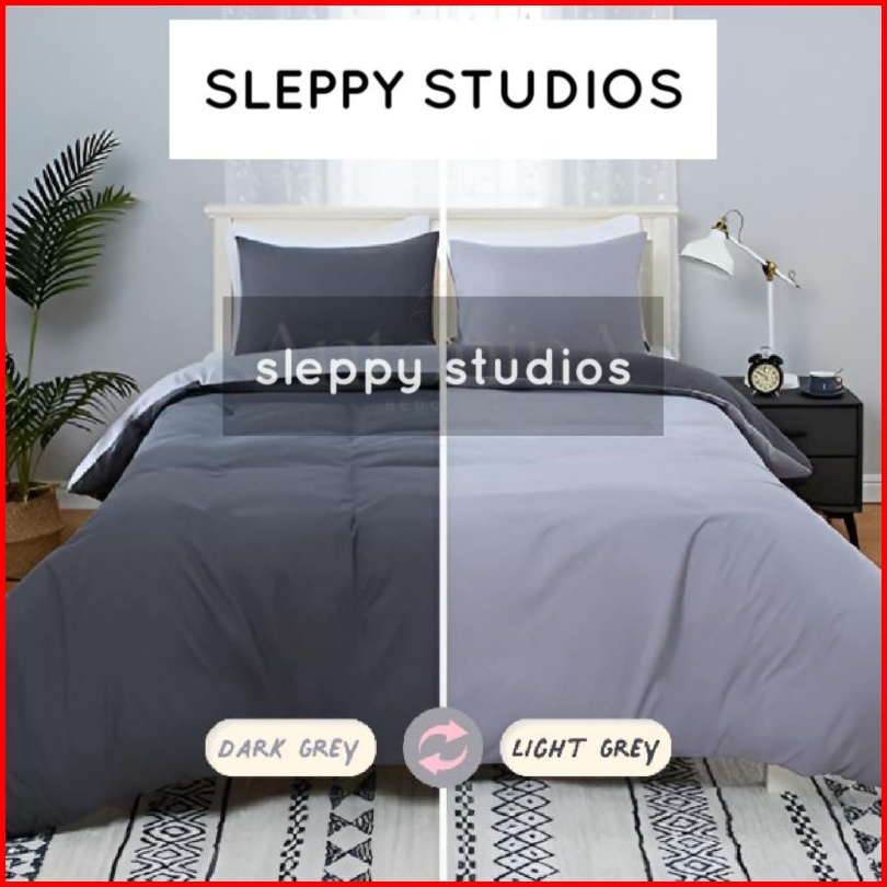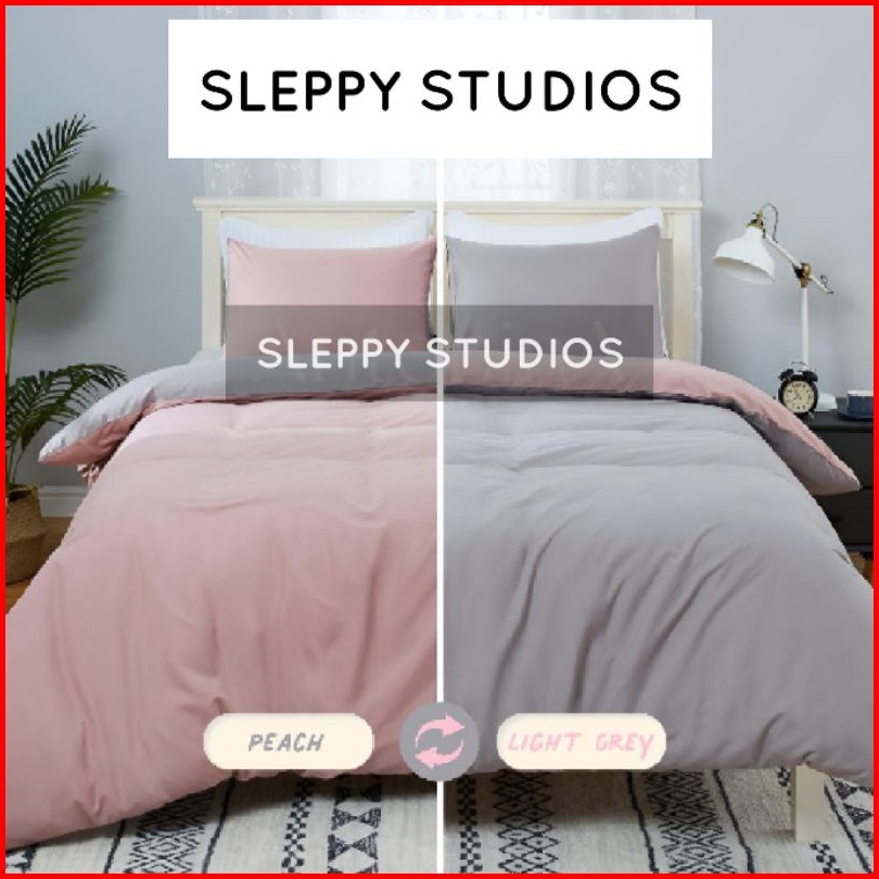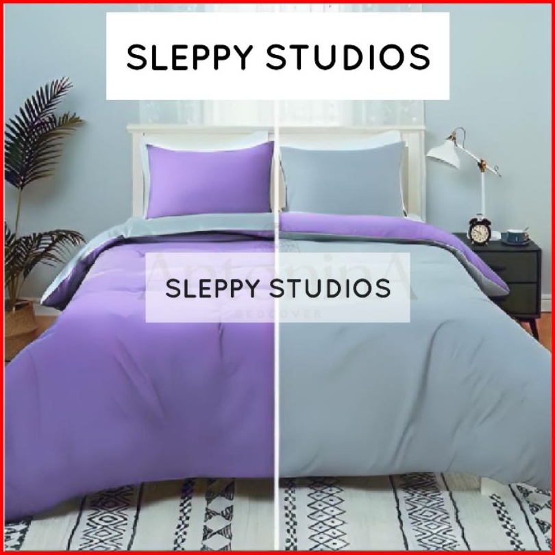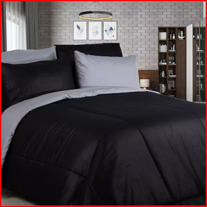Bedcover Sprei Komplit 1 Set Two Tone Atau Mix Dua Warna Free Karet Anti Geser