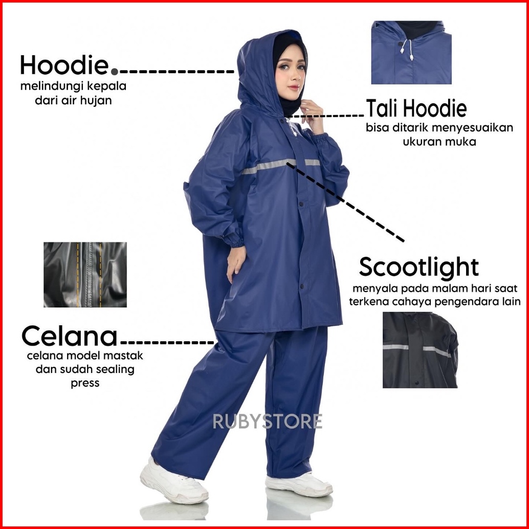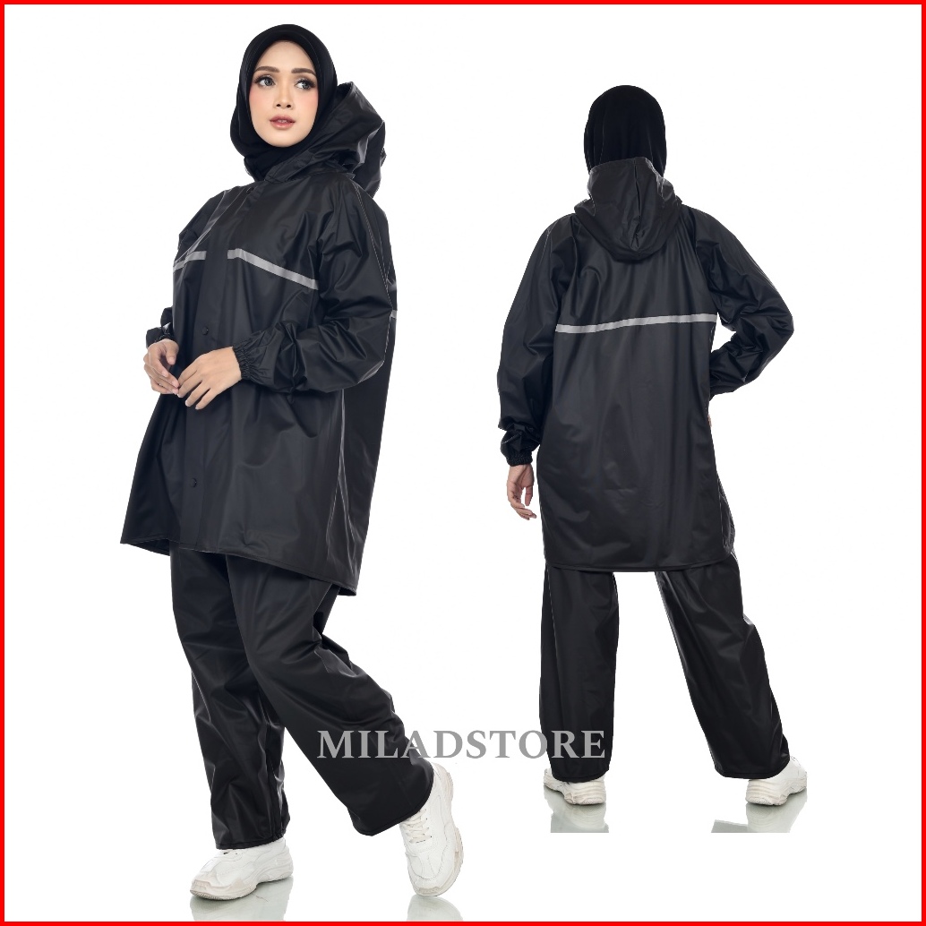 Jas Hujan Raincoat Setelan Pria Wanita Bahan Pvc 025 Tebal Elastis Anti Rembes Mocca Mantel Dewasa
