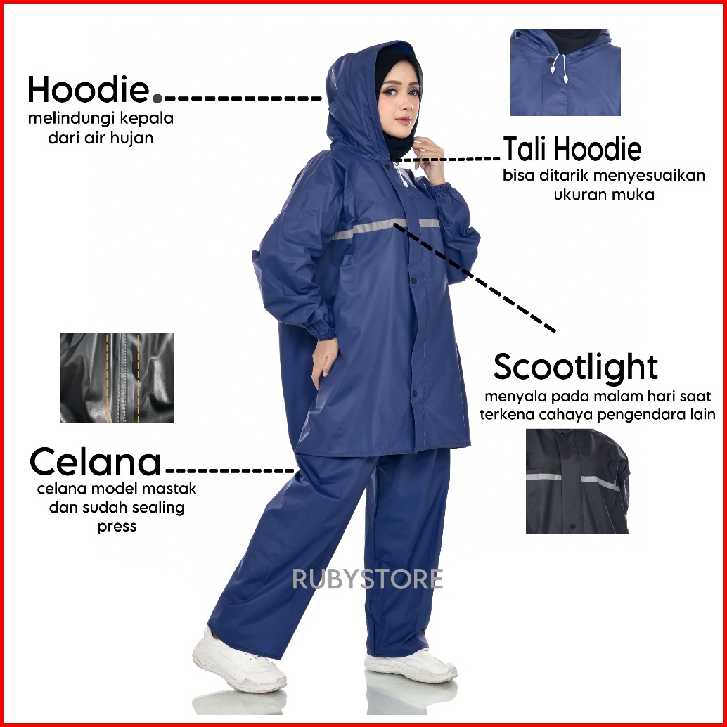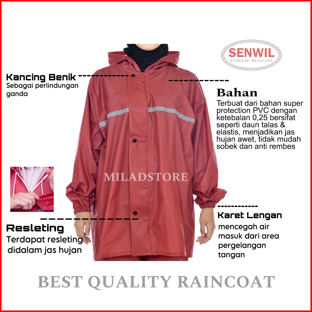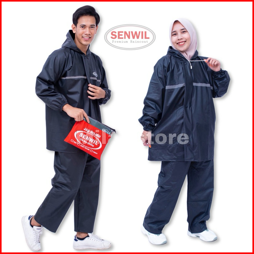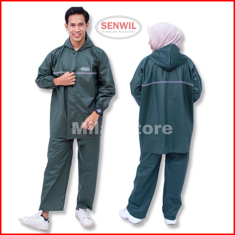Jas Hujan Raincoat Senwil Setelan Pria Wanita Tebal Anti Rembes Hijau Army
