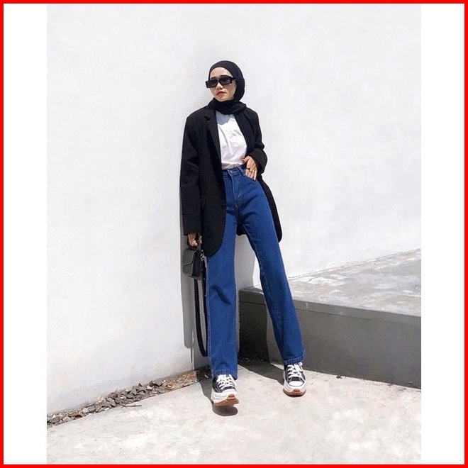 Trivela Highwaist Jeans Kulot Wanita Loose Plainloose