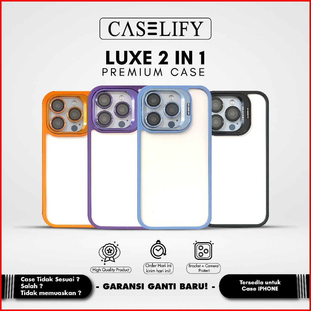 Caselify Luxe 2 In 1 Free Bonus Lensa Camera Protector Case Iphone 11 12 13 14 15 Pro Plus Max