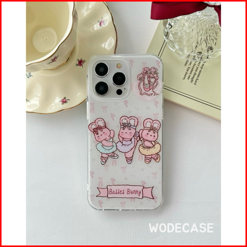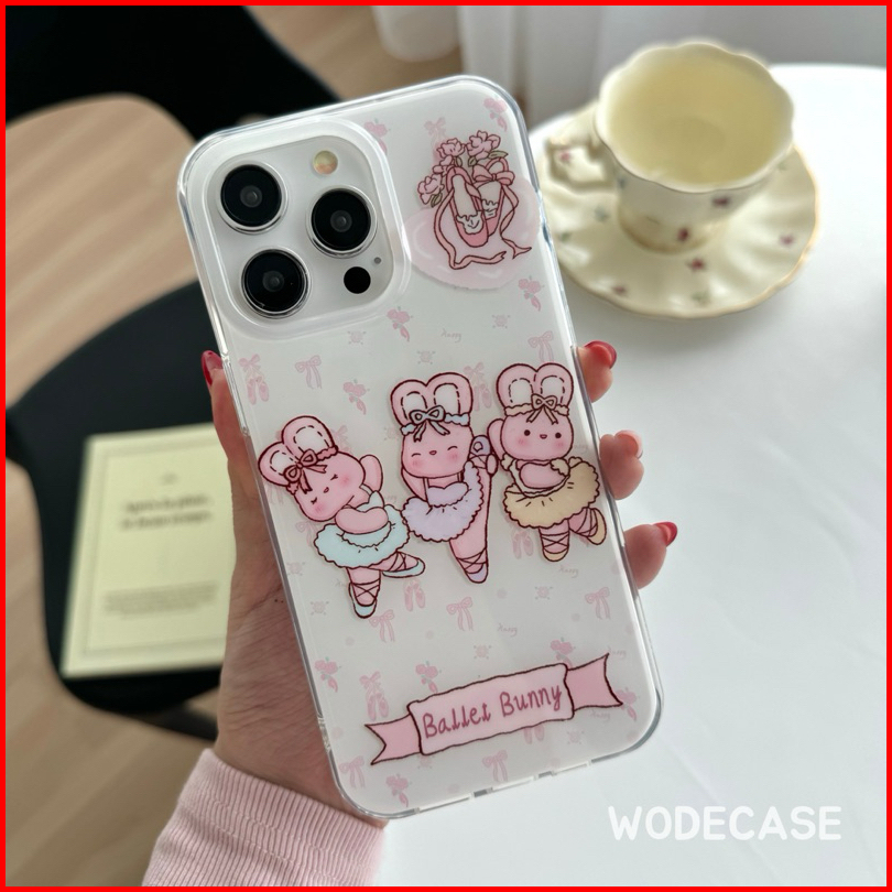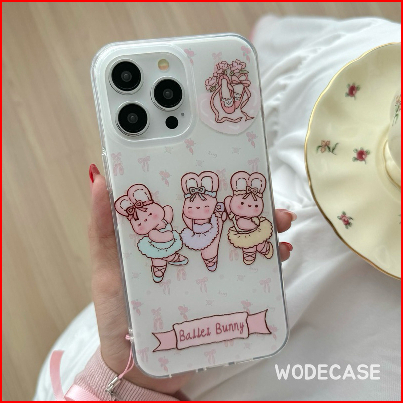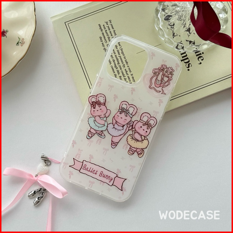 Wodecase Ballet Bunny Protective Acrylic Case Dan Phone Charm Untuk Iphone 11-15 Pro Max